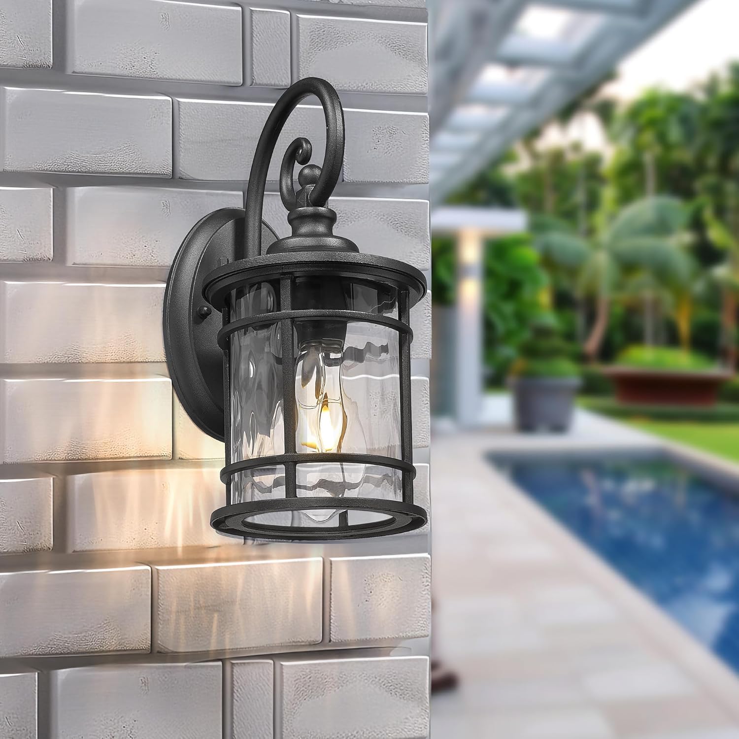 Emliviar Outdoor Lights for House, Outdoor Sconce Lights with Water Ripple Glass in Black Finish, XE229BWG-S BK