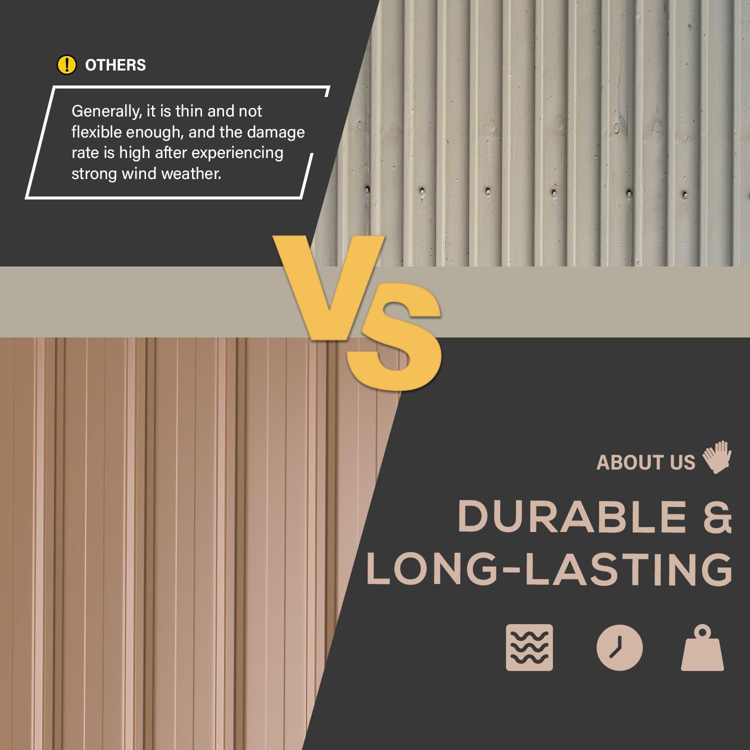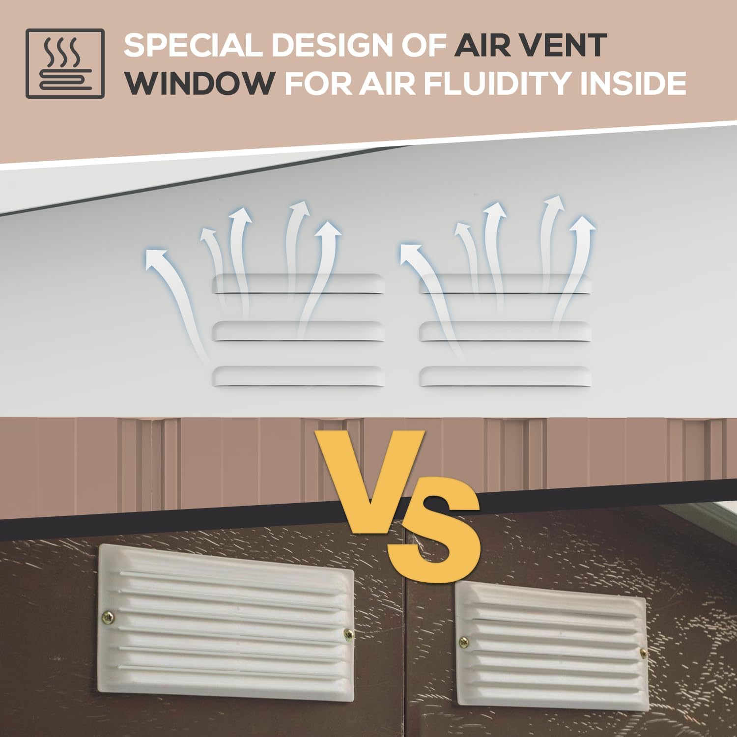 - Robust and Resilient: Enhanced metal plates contribute to the shed's weight of 210 lbs, significantly reinforcing stability and surpassing cheaper alternatives. It can withstand severe weather conditions, with exceptional wind resistance up to approximately 70 mph.