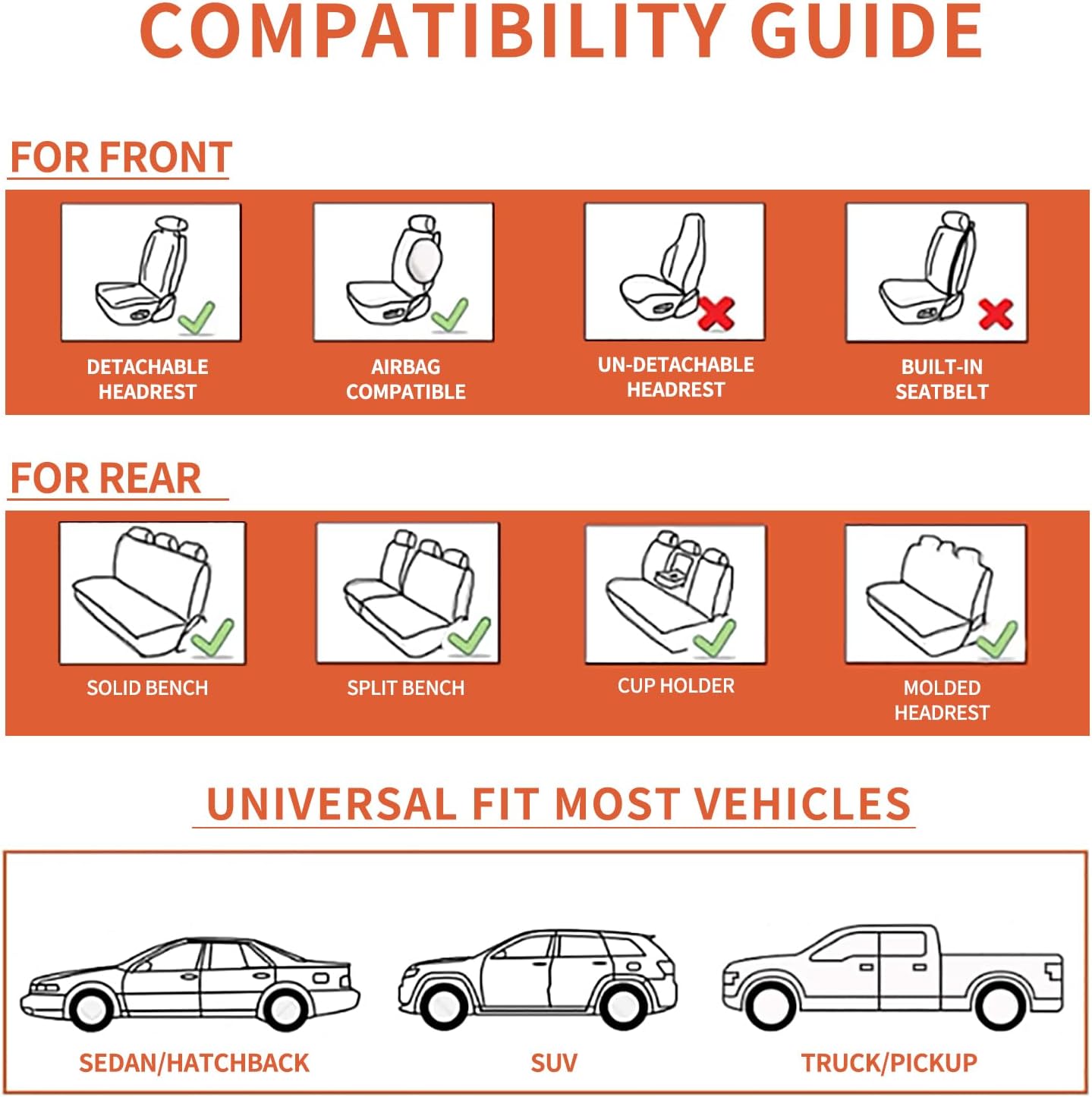 - Special Feature : COMFORTABLE AND AIRBAG COMPATIBLE: Faux leather car seat covers are made of premium faux leather and sponges, thickness up to 0.25in, comfortable to sit on when driving. Leather seat covers for cars are compatible with airbag to ensure airbag works well in case of emergency, EASY TO INSTALL: For your convenience, installation instructions are included in the product package, it usually takes 15-25 minutes to complete the installation following the user manual or the installation video on the page. Luxury leather car seat cover adopts a detachable design, easy to clean with a damp cloth, PERFECT PROTECTION: Waterproof front seat covers features full coverage design, like the gloves to protect the seat from spills, scratch, wear. Anti-slip bottom prevents seat covers from sliding when in and out. Car seat covers do not affect the original function usage, POST-SALE SERVICE: We have a professional after-sale team stand by. If any questions, you can find us by emails quickly and we will try our best to help you, UNIVERSAL FIT: Faux leather seat covers come with 2 front seat covers, which are compatible with more than 95% vehicles, such as cars, sedans, suv, truck and pick-up. NOTE: NOT suitable for seats with fixed armrest. Please check the Vehicle Fitment Chart before purchasing COMFORTABLE AND AIRBAG COMPATIBLE: Faux leather car seat covers are made of premium faux leather and sponges, thickness up to 0.25in, comfortable to sit on when driving. Leather seat covers for cars are compat… See more