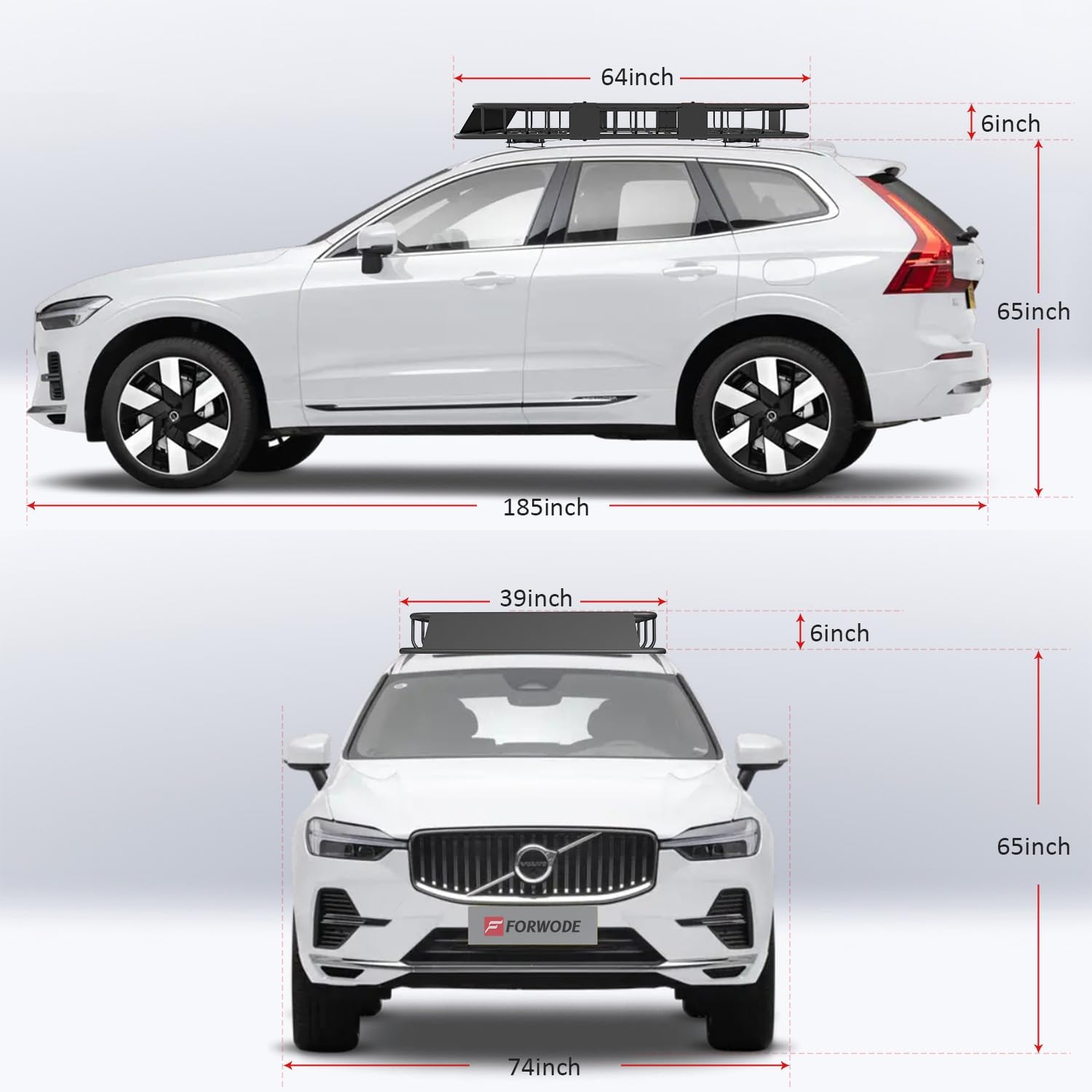 - Spacious Cargo Capacity: With dimensions of 64" x 39" x 6", Effortlessly switch between 43" / 64" length with tool-free adjustments, this rooftop cargo basket provides ample and flexible storage space, freeing up valuable interior space in your vehicle for a more comfortable ride during long trips or camping travel.
