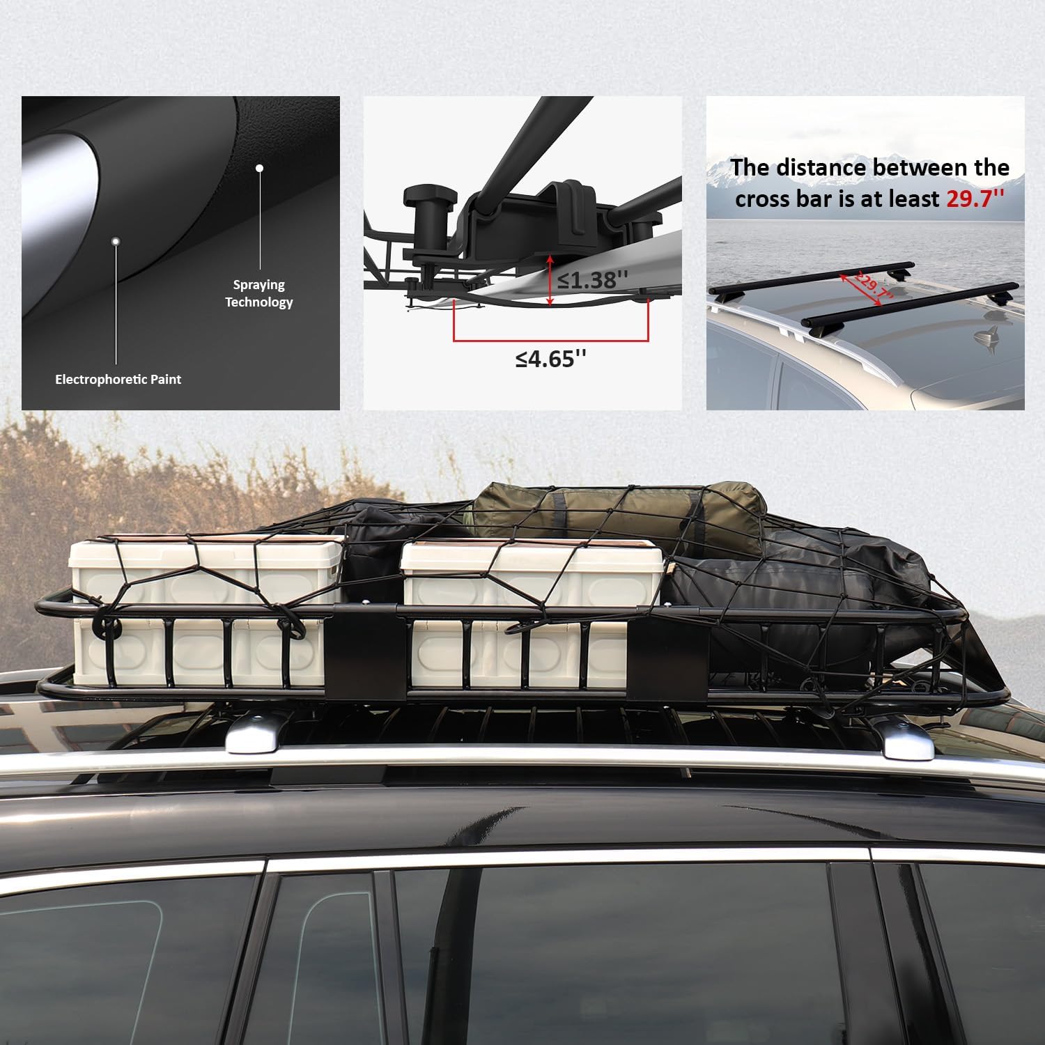 FORWODE 250LB Capacity Heavy Duty 64" x 39" x 6" Roof Rack Cargo Carrier Basket – Includes Cargo Net, for SUV/Truck/Van, Perfect for Travel & Camping