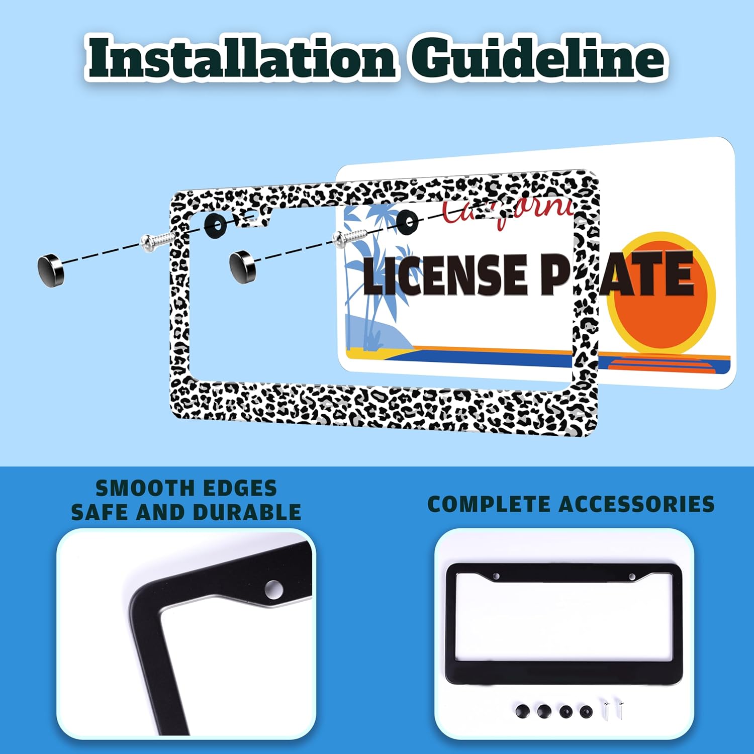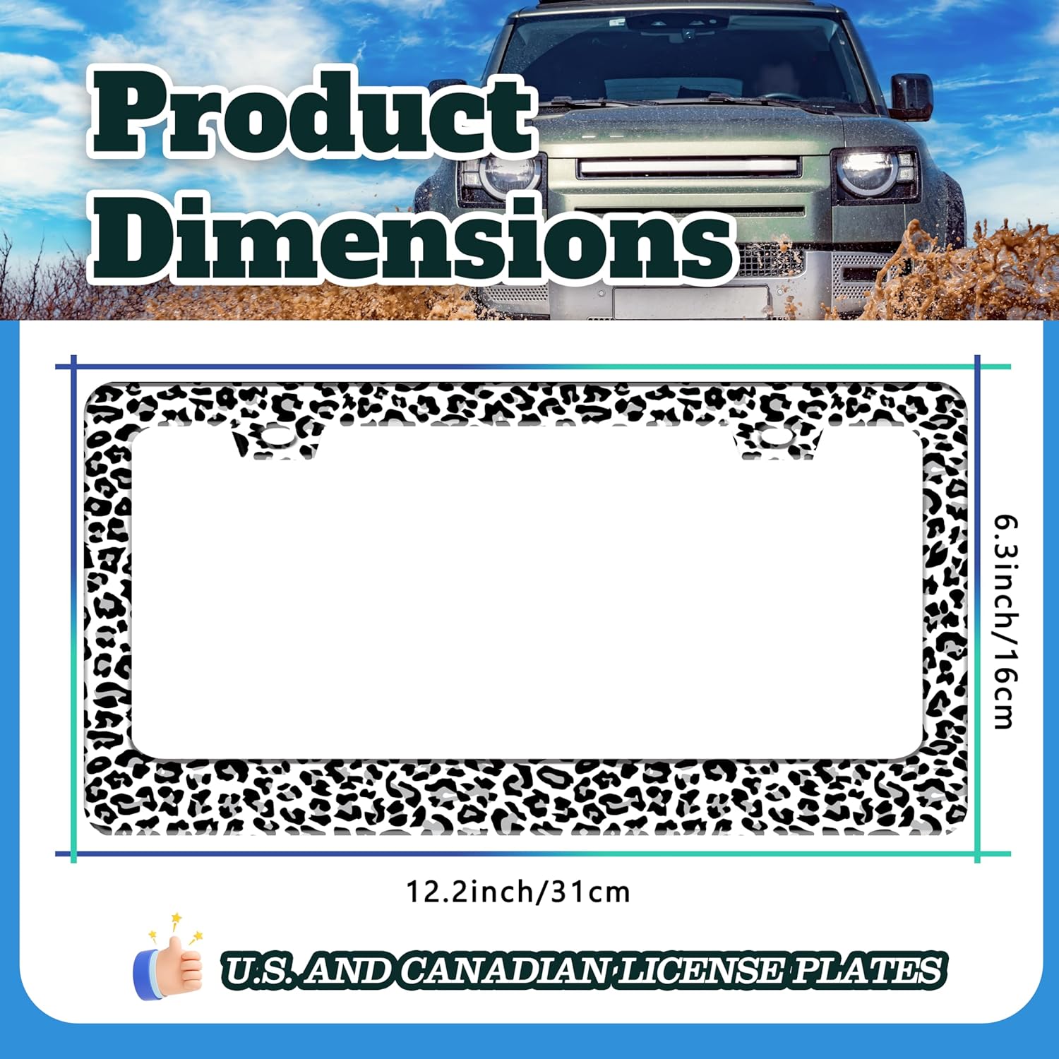 Leopard Print License Plate Frame Skin Texture Pattern Stainless Steel License Plate Holder for Front or Rear Car Tags Funny for Car Decoration Accessories with Screws 6.3 X 12.2 in for Women Men