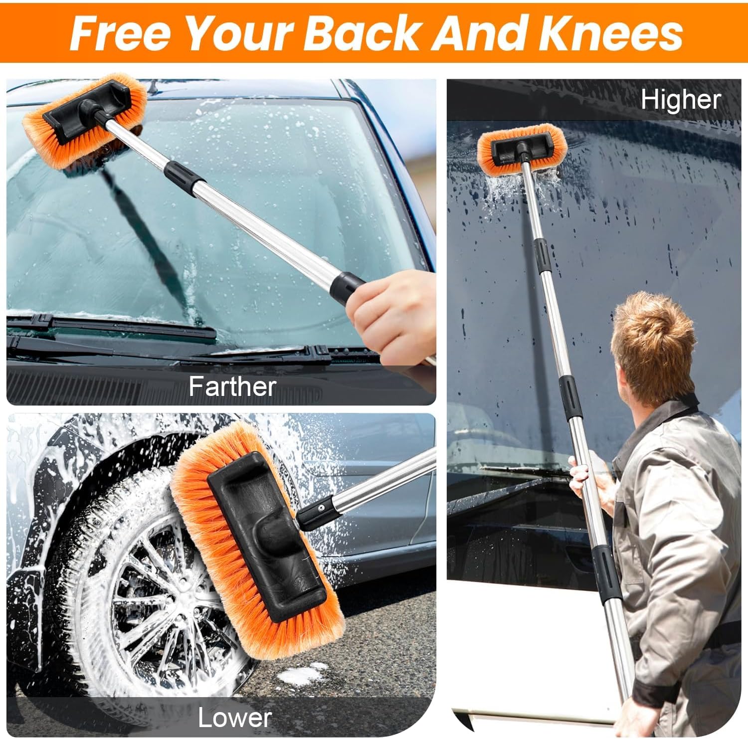 - 【Ultimate Anti-Scratch Soft Bristle Brush】Come with “flocked” super soft bristles wash head, won't scratch paint, prevent the scrub brush from scratching cleaning surfaces. The 5-sided, angled-face brush is optimally designed to fits into corners and conforms to contours and uneven surfaces, scrubbing away hard-to-reach grease and grime.