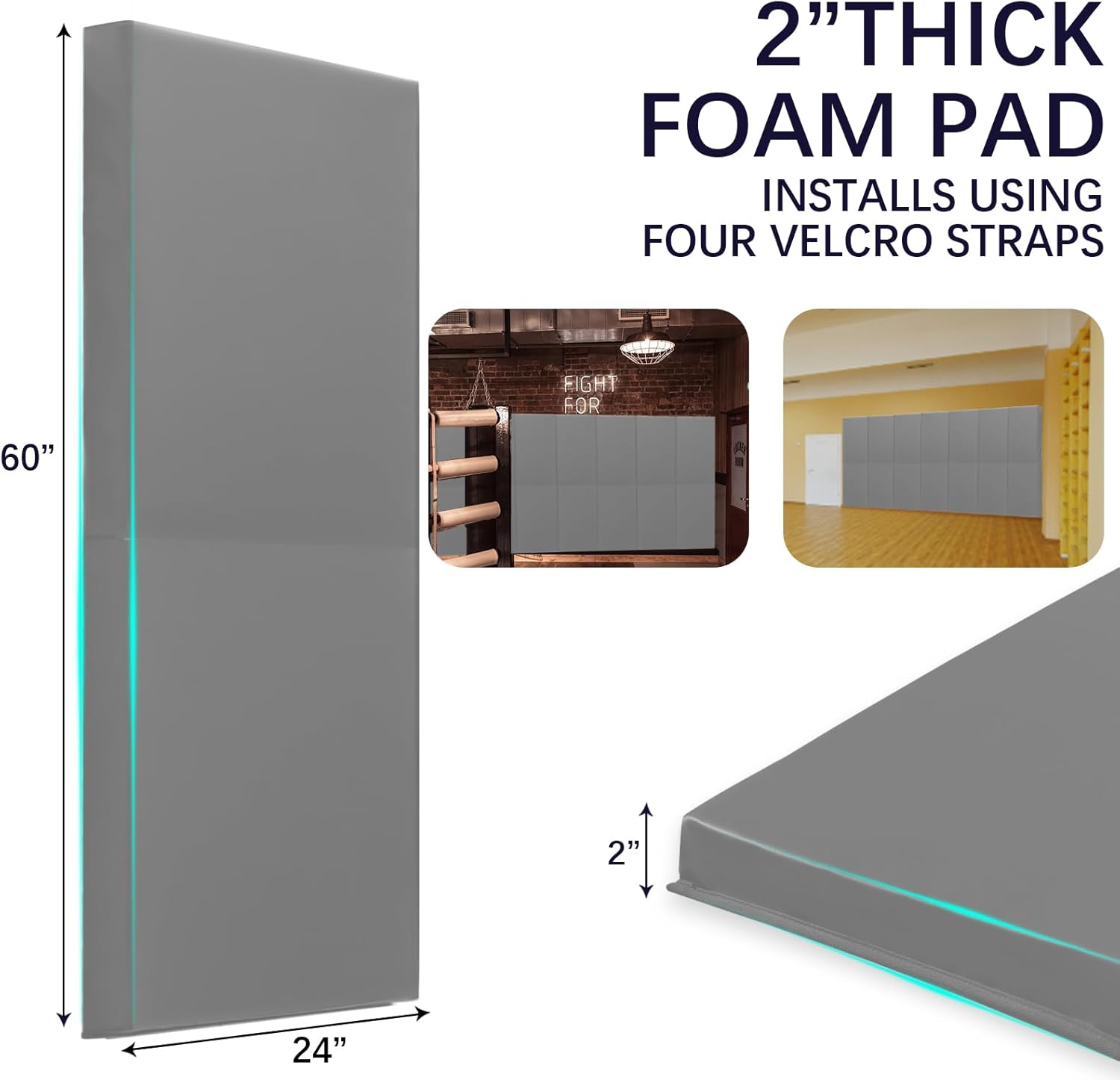 - 💯【Extensive coverage and value】 : Each package includes one smooth light grey sports protective wall pads, providing a total coverage area of 10 square feet. With pad sizes of 60"x24"x2" they can accommodate various wall sizes, ensuring comprehensive protection.
