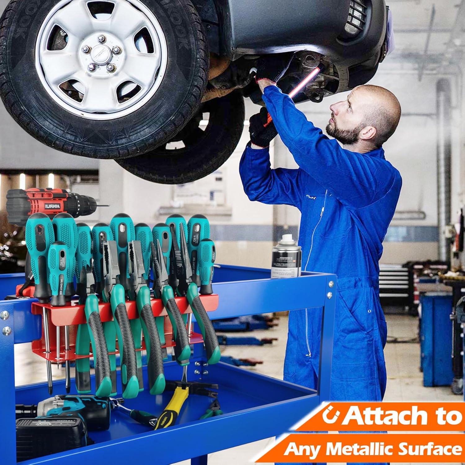- Magnetic Screwdriver Holder: Magnetic Screwdriver Racks can easily place a mount of screwdrivers, pliers, ratchets, and other hand tools. The rack comes with 18 pre-drilled holes that are well-spaced and placed