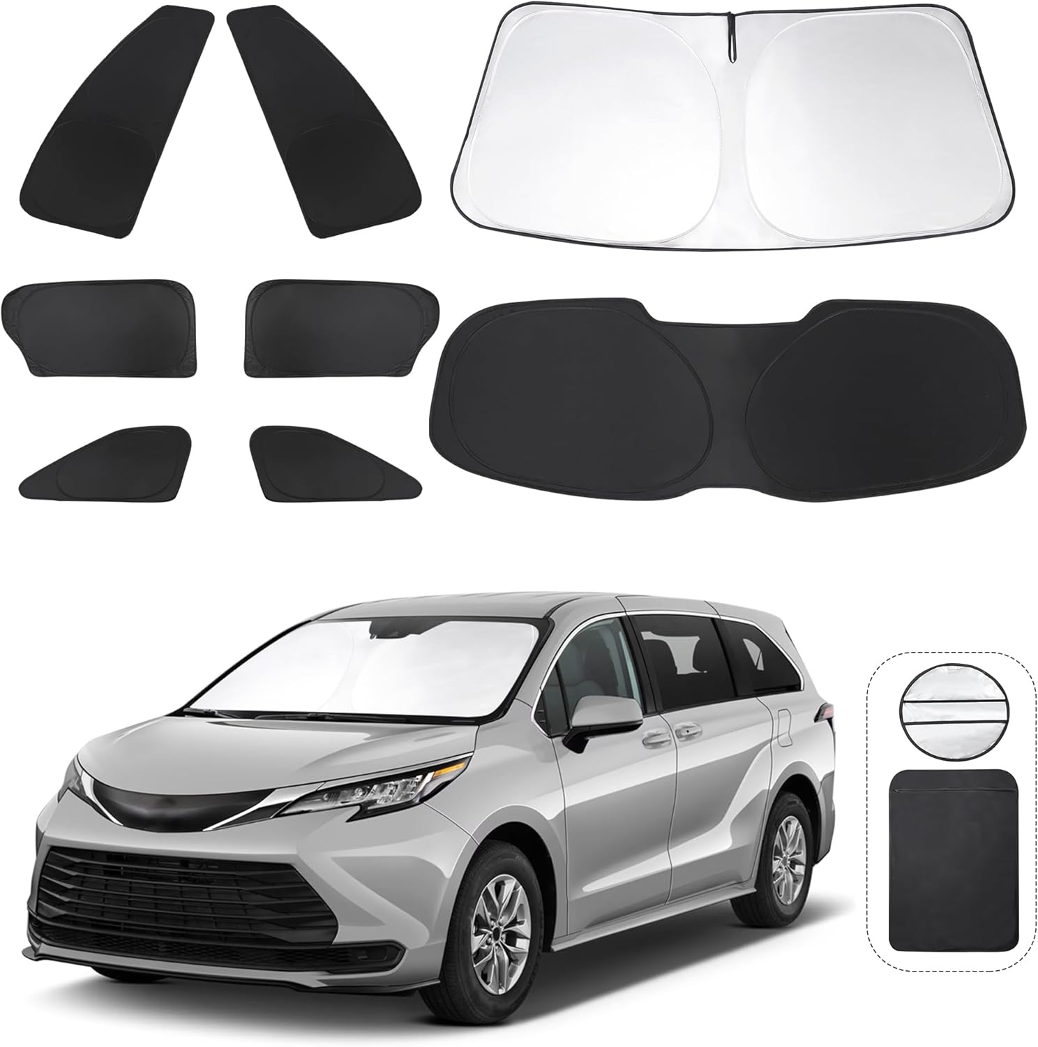 TINGLU Window Shades for Toyota Sienna 2021-2025 Accessorie Car Side Full Windows Rear Triangular Windshield Sun Shade Sun UV Rays & Privacy Protection for Camping,Napping,and Relaxing 8PCS
