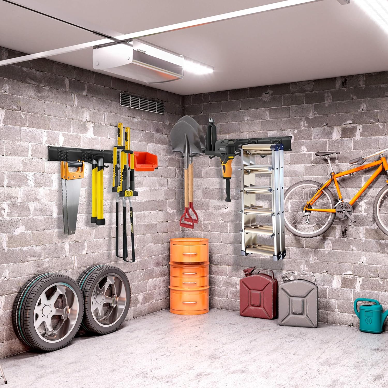 - šš¢ššš„š² šš¬šš - Can be used to organize various tools such as shovels, leaf rakes, brooms, cords, blowers, folding chairs, pole cutters, hockey sticks, ski gear, and more.