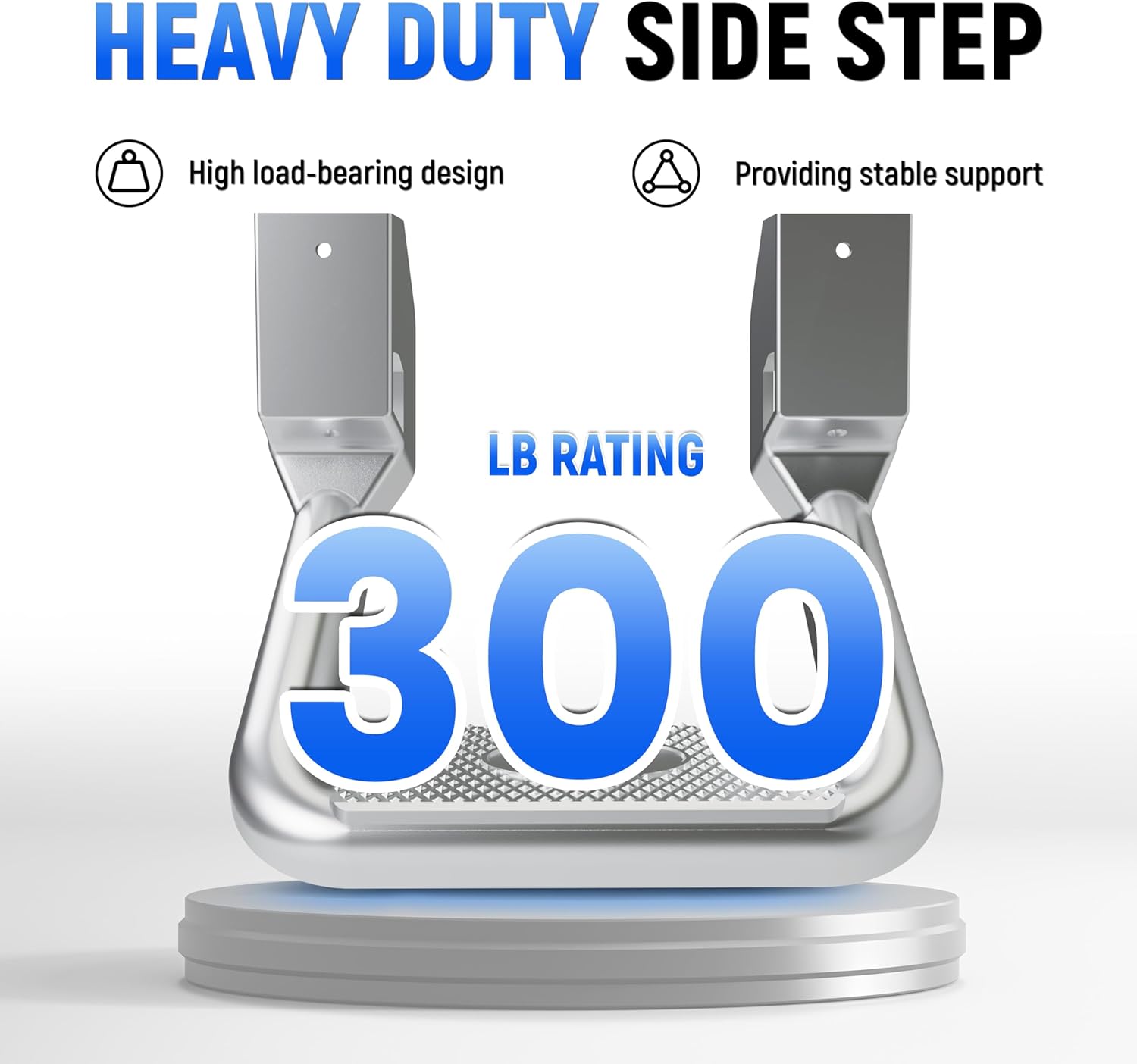 - Easy Installation: 2 Pcs X Side Steps (Silvery) . The package contains the necessary installation accessories as well as instructions. Takes the design of simple screw mounting. Please note that drilling is required before installation.