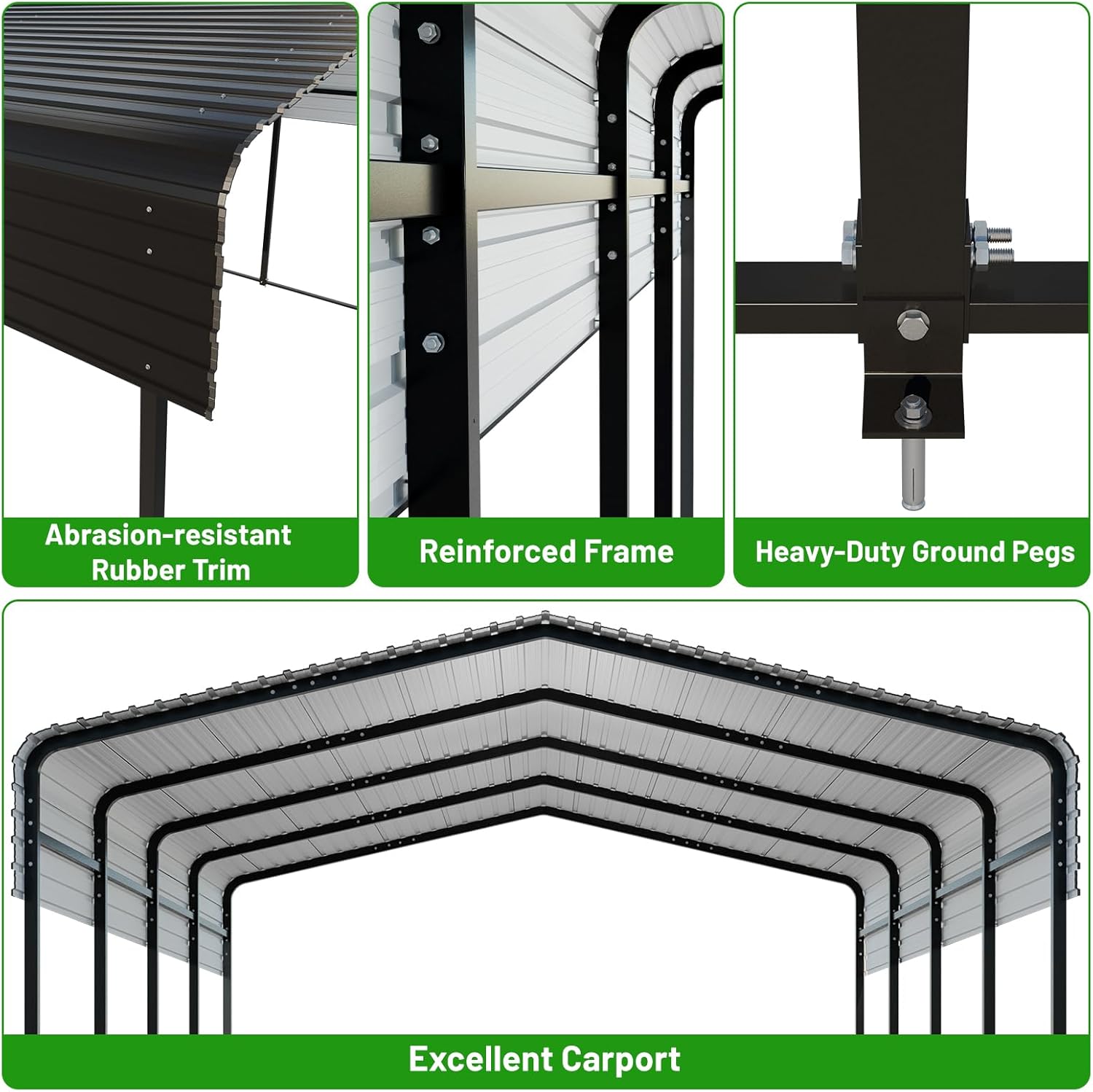 13 x 20 FT Metal Carport with Heavy Duty Galvanized Steel Roof & Durable Frame, Metal Car Garage, Sturdy Canopy Shelter for Car, Truck, Pickup, SUV, Tractor, and Boat