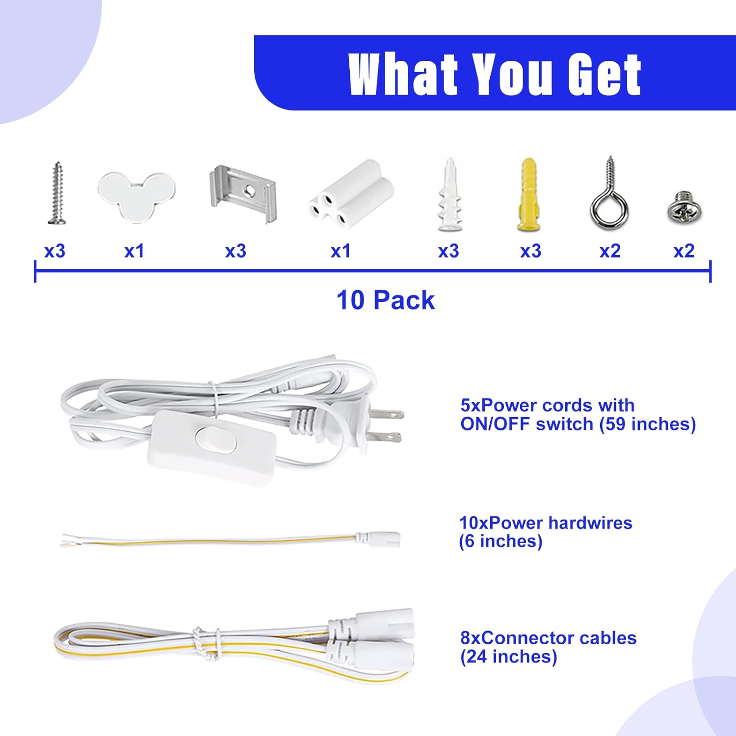 - Plug & Play for All Scenes: Includes power cords (with switch), hardwire kits, connectors, and hanging accessories. Works with 120V wide voltage. Tool-free installation (max 20ft ceiling height). Keep away from radio devices to prevent interference.