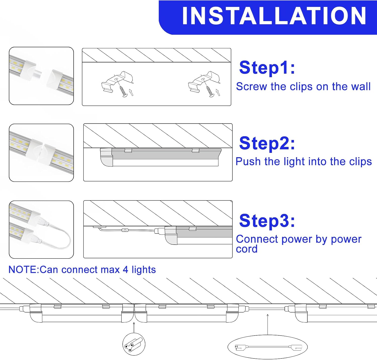 - Special Feature : Clear cover, Linkable, Max could connect 4 lights in series, The led shop lights 8ft is Easy install, plug and play, This 8ft led shop light is Energy Efficient Clear cover, Linkable, Max could connect 4 lights in series, The led shop lights 8ft is Easy install, plug and play, This 8ft led shop light is Energy Efficient