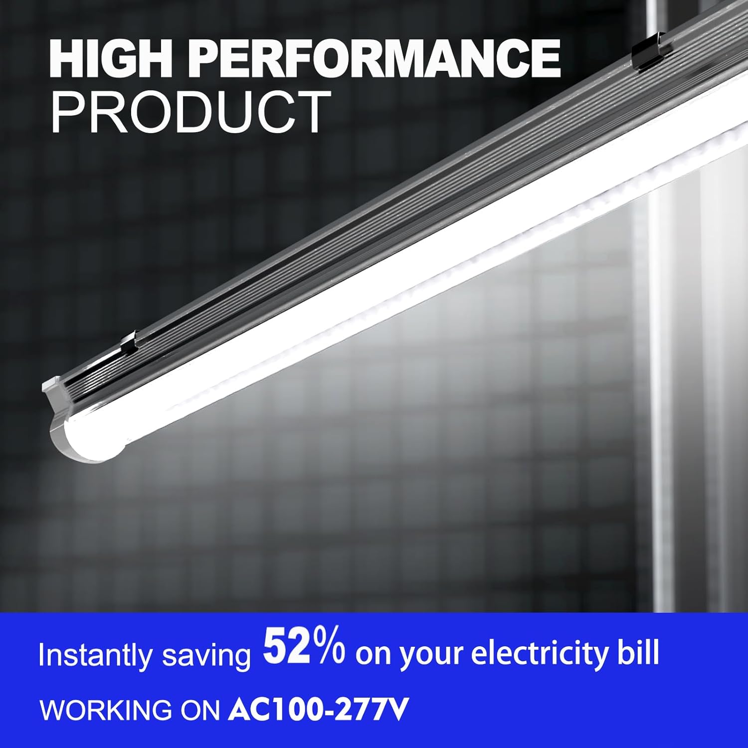 - Comfortable & Eco-Friendly Lighting:6500K Cool White. No flicker, mercury-free, noise-free, high efficiency 150LM/W protects vision. Ideal for basements, supermarkets, workbenches, etc.