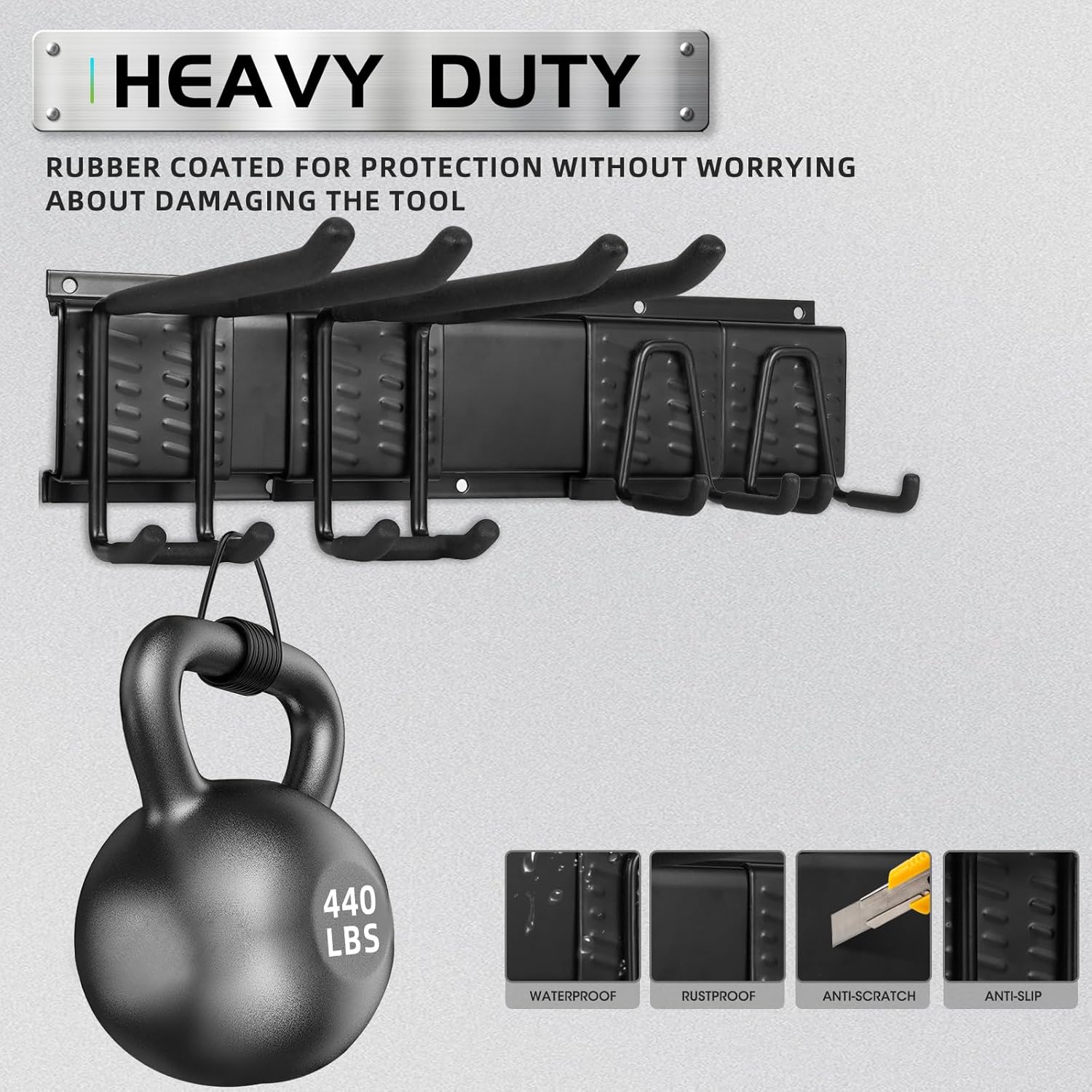 - 【EASY INSTALLATION】 Hooks of yard tool organizer for garage can be disassembled again and again, no need to assemble, just mark where you want to mount it, keep it level, mount the garage organizer wall mount to the wall with anchors and screws and use it.