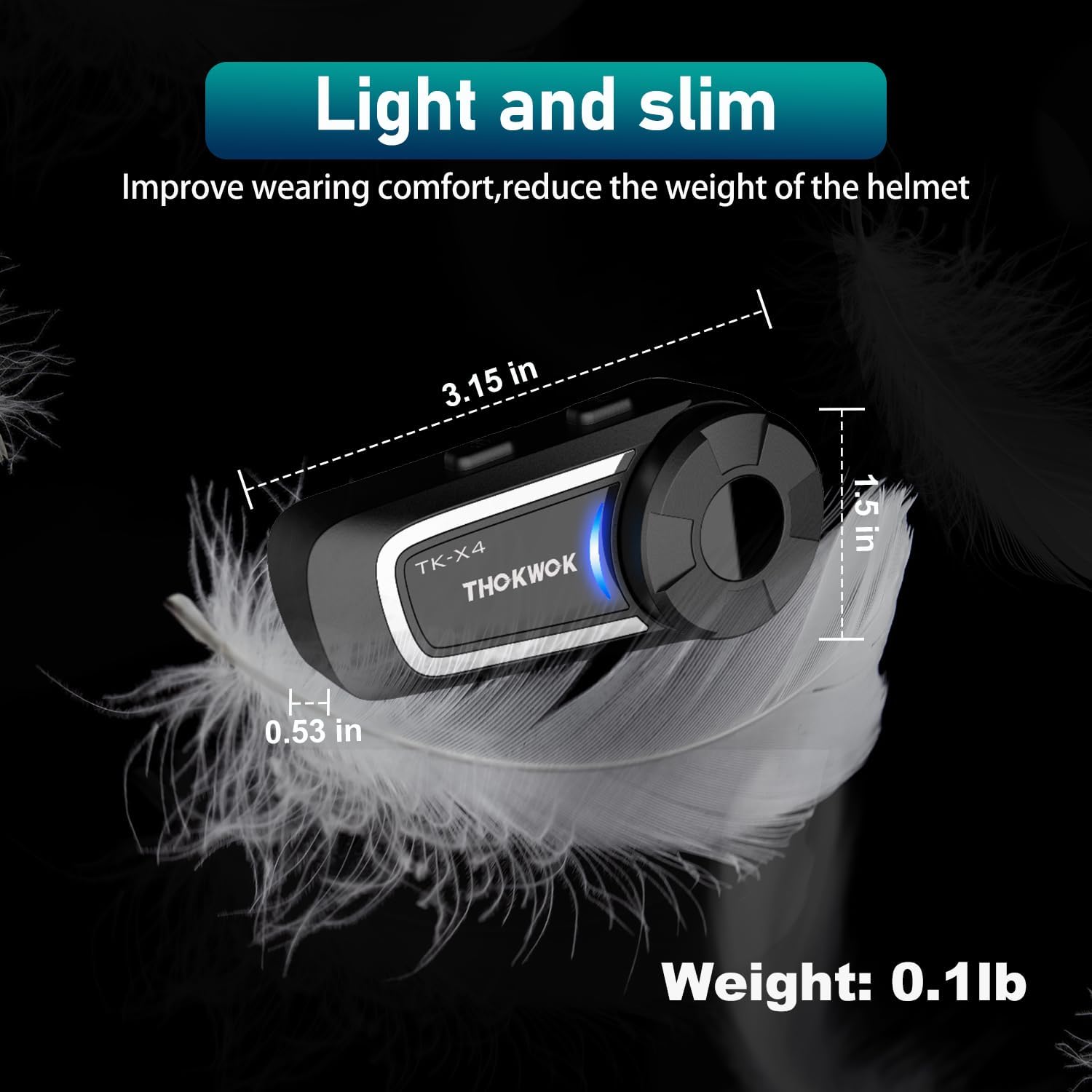 - 【6-Person Group Intercom & Music Sharing】TK-X4 motorcycle Bluetooth headset can connect up to 6 TK-X4 or X4SC units(Optimal for 4 units) and their communication distance is up to 2 kilometers, keeping you connected with your group during your motorcycle ride. The maximum communication distance is 800 m in two-way intercom. It also featured music sharing, allowing two riders to enjoy the same song simultaneously during their journey.