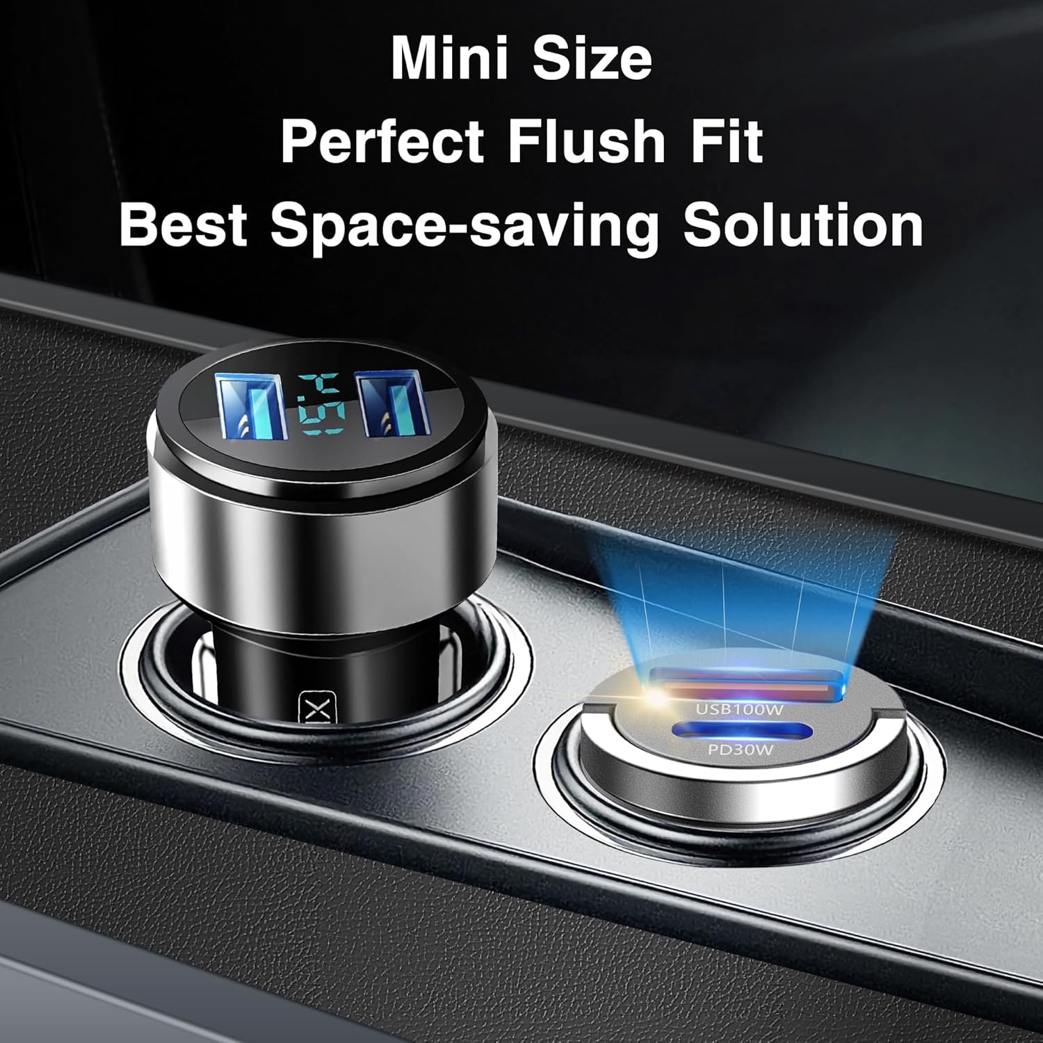 - 【All Metal, Smaller and Safer】The high-density aluminum alloy shell can help the car charger to dissipate heat in the charging process, effectively improving the charging efficiency by about 30%, and absolutely no melting and danger. The all-metal body also has a unique sense of design and luxurious texture.