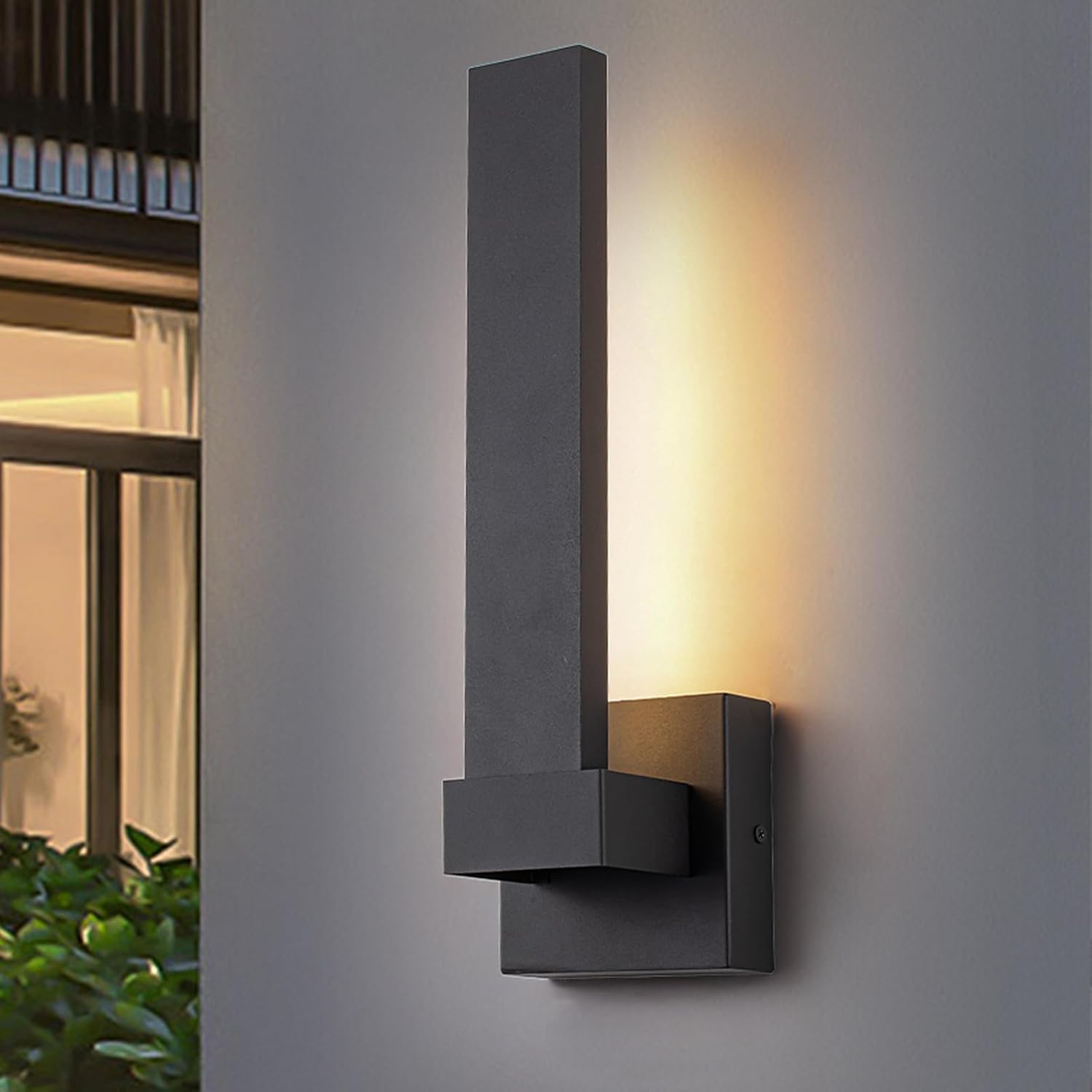 - Stylish and Minimalist Design: The black outdoor wall sconce projects light upwards through a rectangular design.16W,3000K Warm and comfortable light color provides a soft and bright light, which enhances the modern feel of the building and creates a warm atmosphere, while avoiding light interference to neighbors.
