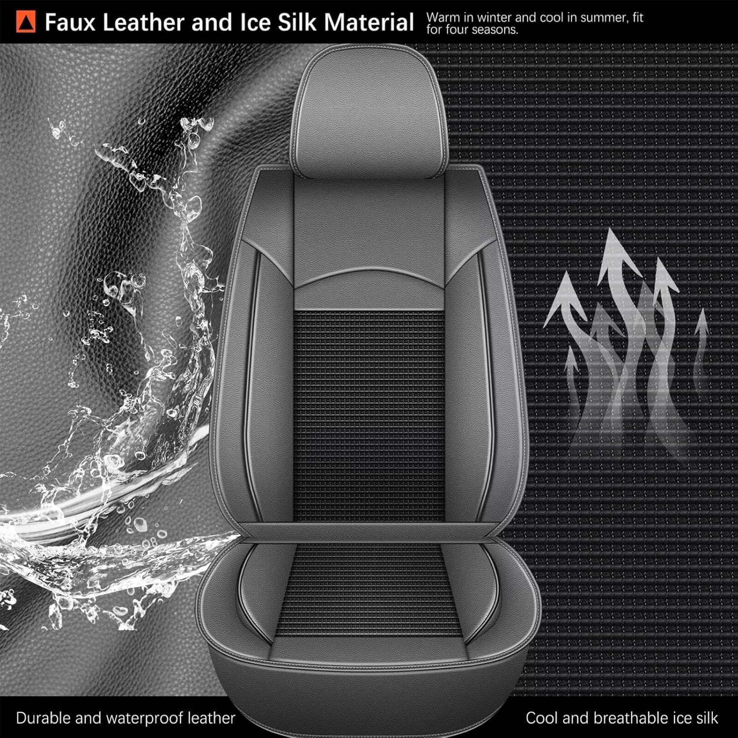 - 🔥🚗【High-quality Material】: Super breathable series are constructed with durable faux leather seat covers and ice silk special woven fabric center sections, durable and waterproof, bring breathable comfort experience. Non-slip fabric is used on the bottom layer, keep the covers in place, would not easy to slide.