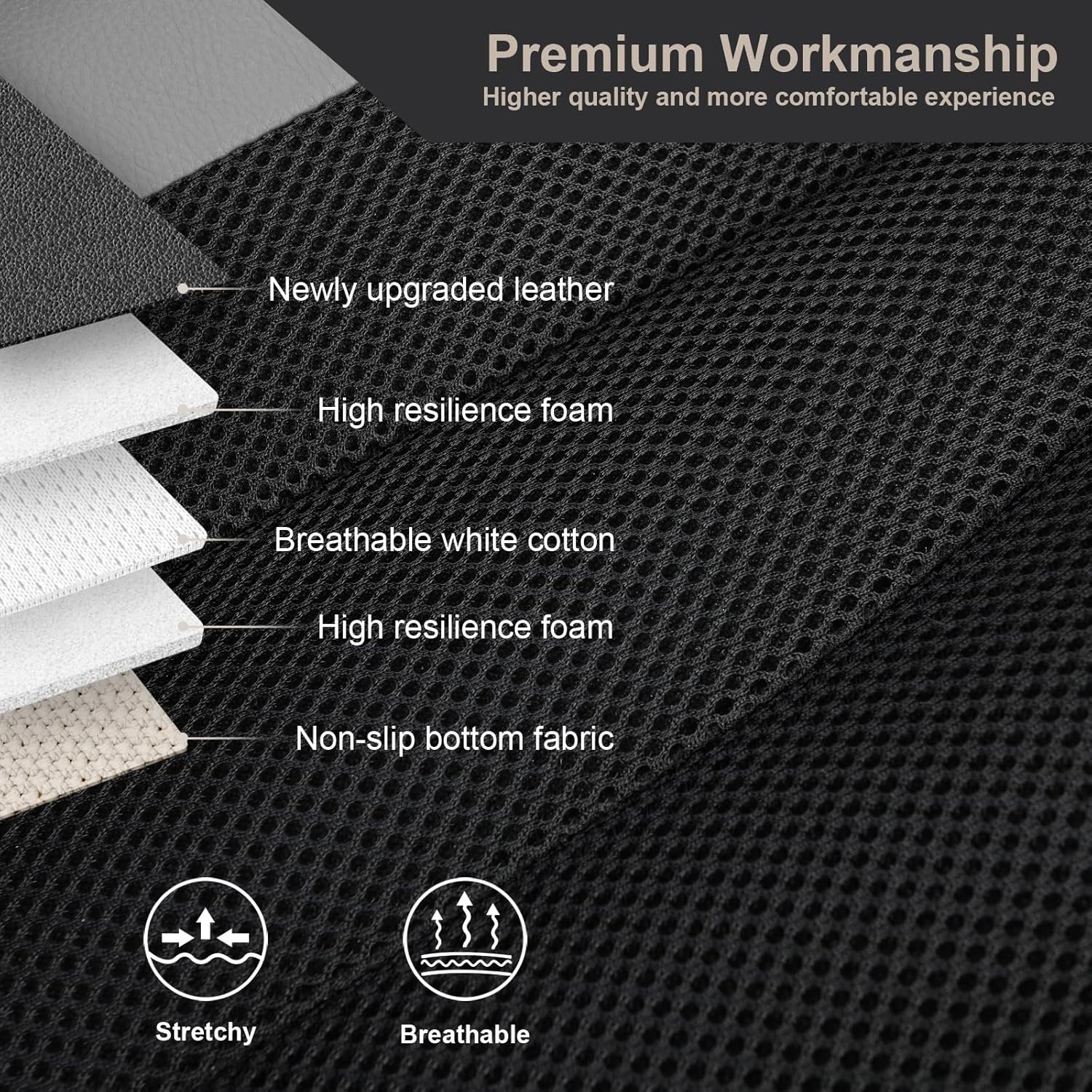 - The combination of padded faux leather and breathable mesh not only enhances overall practicality and aesthetics but also protects the original seats from wear, stains, and pet hair.