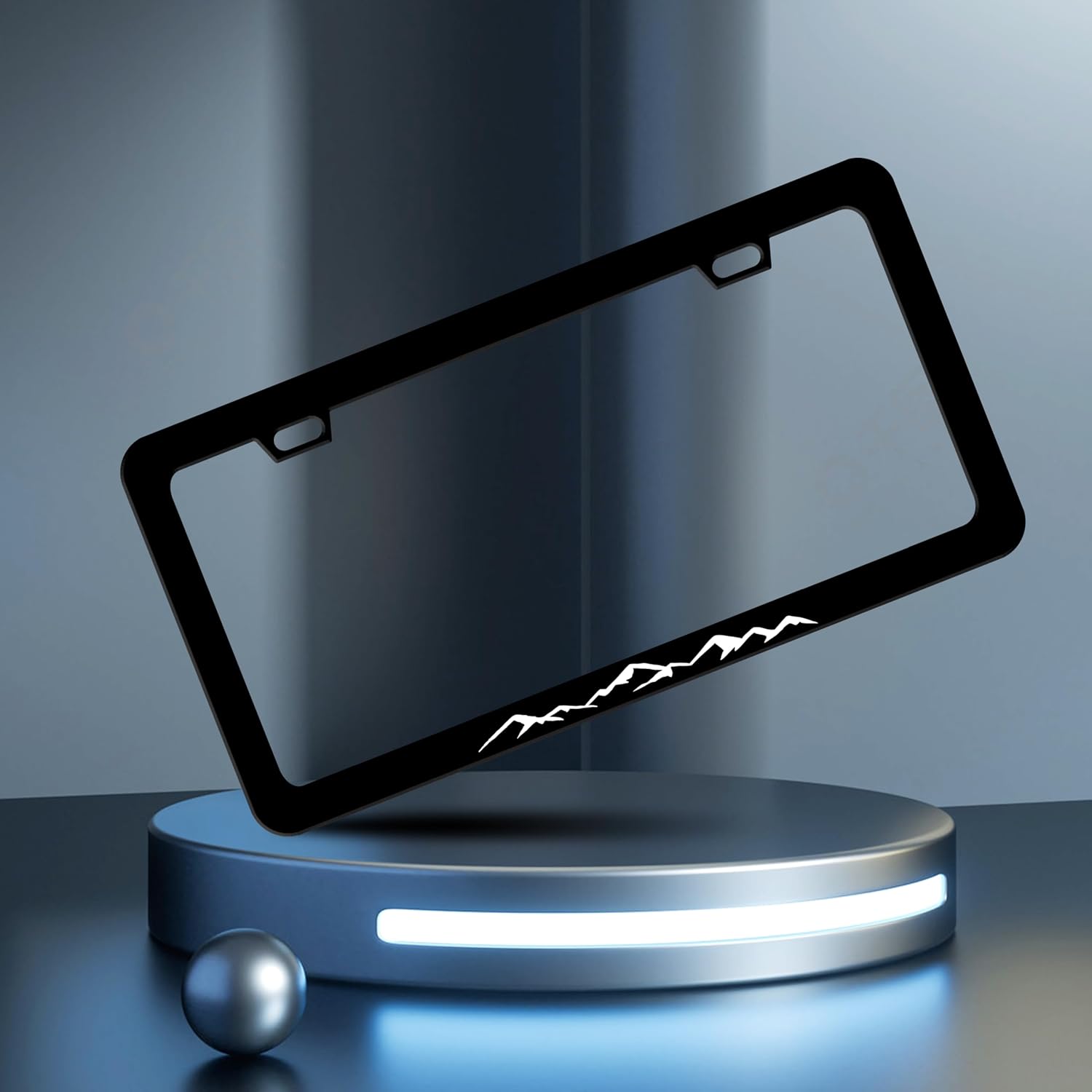 Black White Mountains License Plate Frame Mountain License Plate Frames Personalise Stainless Steel Funny Design Compatible with Standard License Plate Holder for USA Canada 6 X 12 Inch with Screws