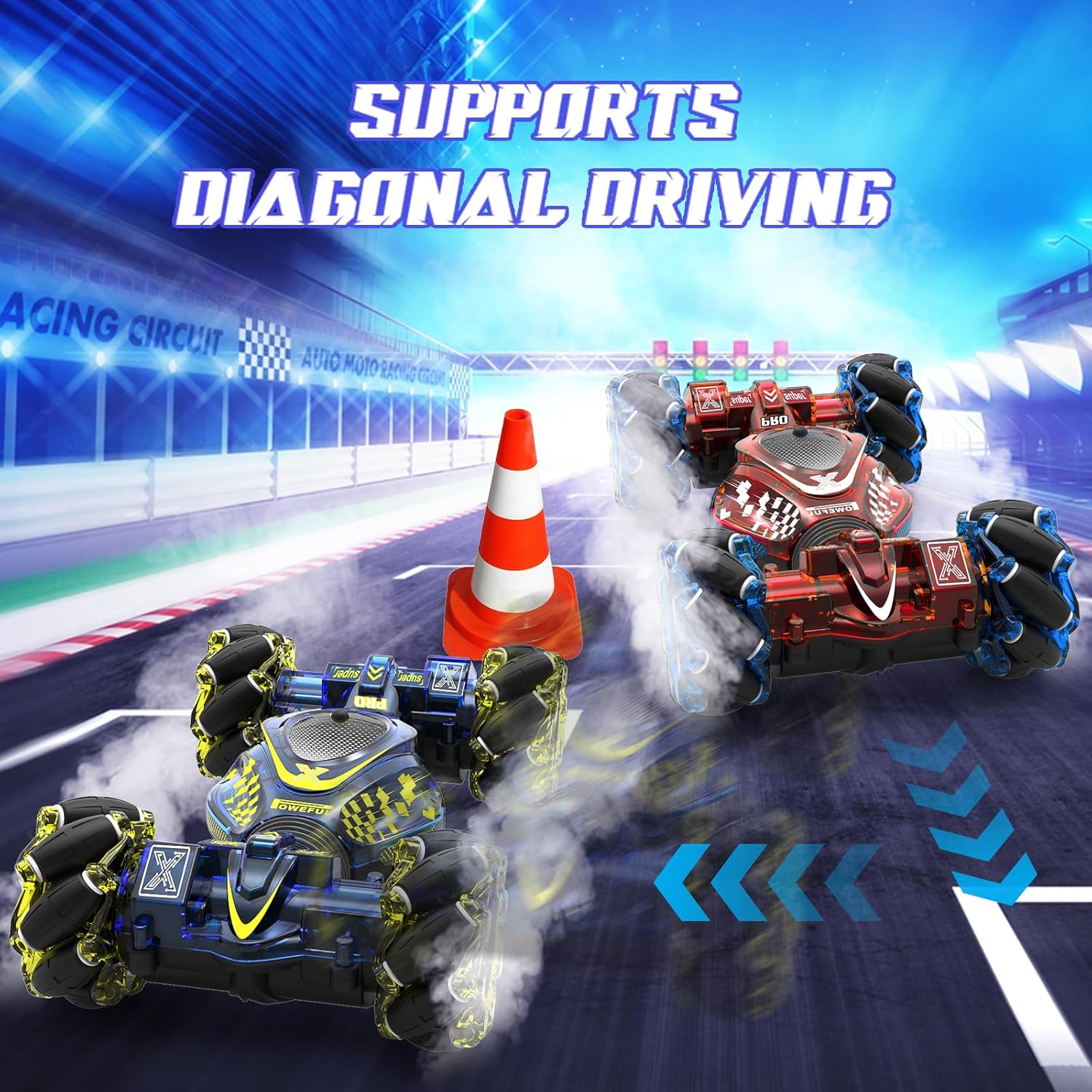 - RC Stunt Car Quality Assurance:The car Equipped powerful 4WDwith anti-collision durable rubber tires and shock absorbers and with flexible wheels, the race toy car allows high speed and better flexibility. Suitable for competitions on all kinds of ground,such as grass, desert, rocks, stairs, rough roads, etc, will bring your kids a different driving experience.