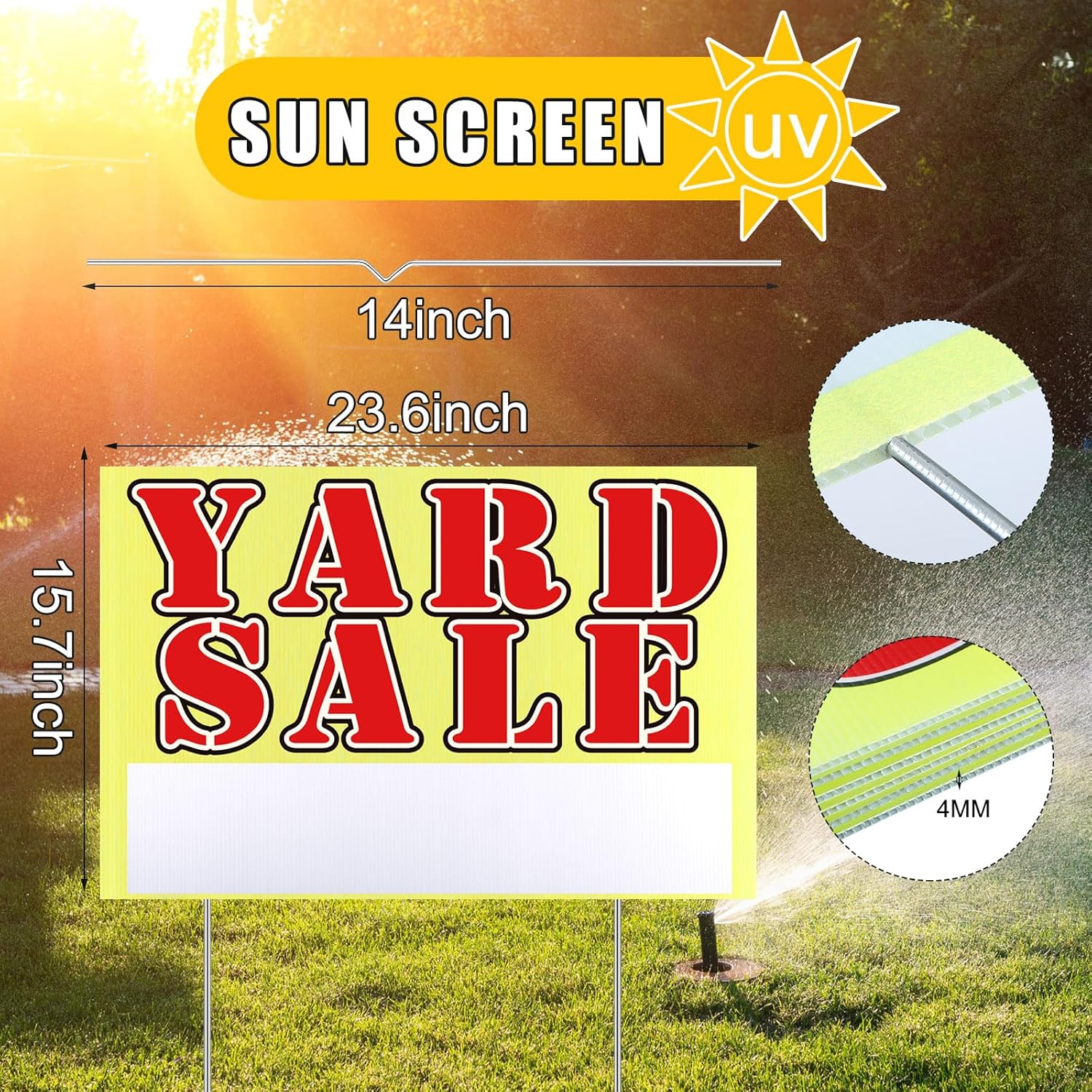 - Double Sided Design: Each sign sports a double sided design, maximizing space for details including your address, contact number, sale date, and more. Enhance your visibility and connect effectively with prospective customers with our user friendly signs.