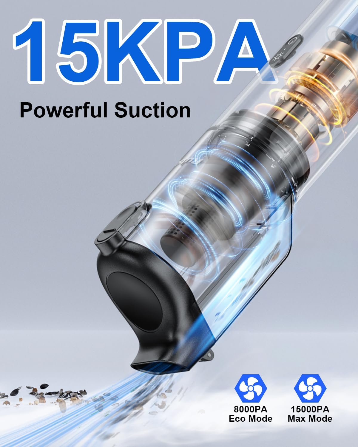 - đźš—Lightweight & High-Powered: With a cleverly designed extra-large dust bin, you can clean multiple corners without frequent emptying. The handheld vacuum, weighing only 1.3 LB, but delivers an impressive 15Kpa suction force. It effortlessly tackles dirt, dust, and debris in any nook and cranny, ensuring a fatigue-free cleaning experience.
