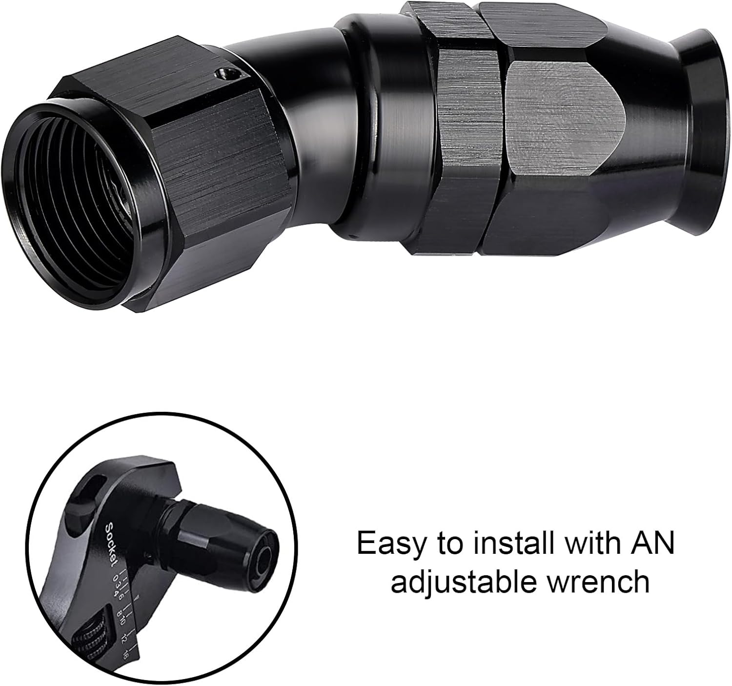 - [Application] These fittings are ONLY used with PTFE fuel lines for E85, alcohol, nitro, clutch, nitrous, power steering, oiling, hydraulics, and vacuum applications. A 360° swivel design allows for easy assembly.
