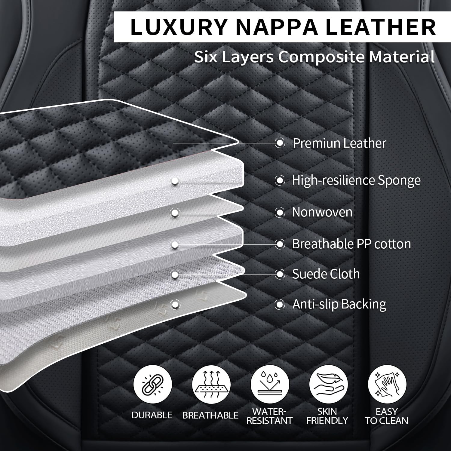 • HIGH QUALITY MATERIAL: Car seat covers is made of artificial leather filled with high elasticity sponge inside, soft and comfortable, which can enhance driving comfort.