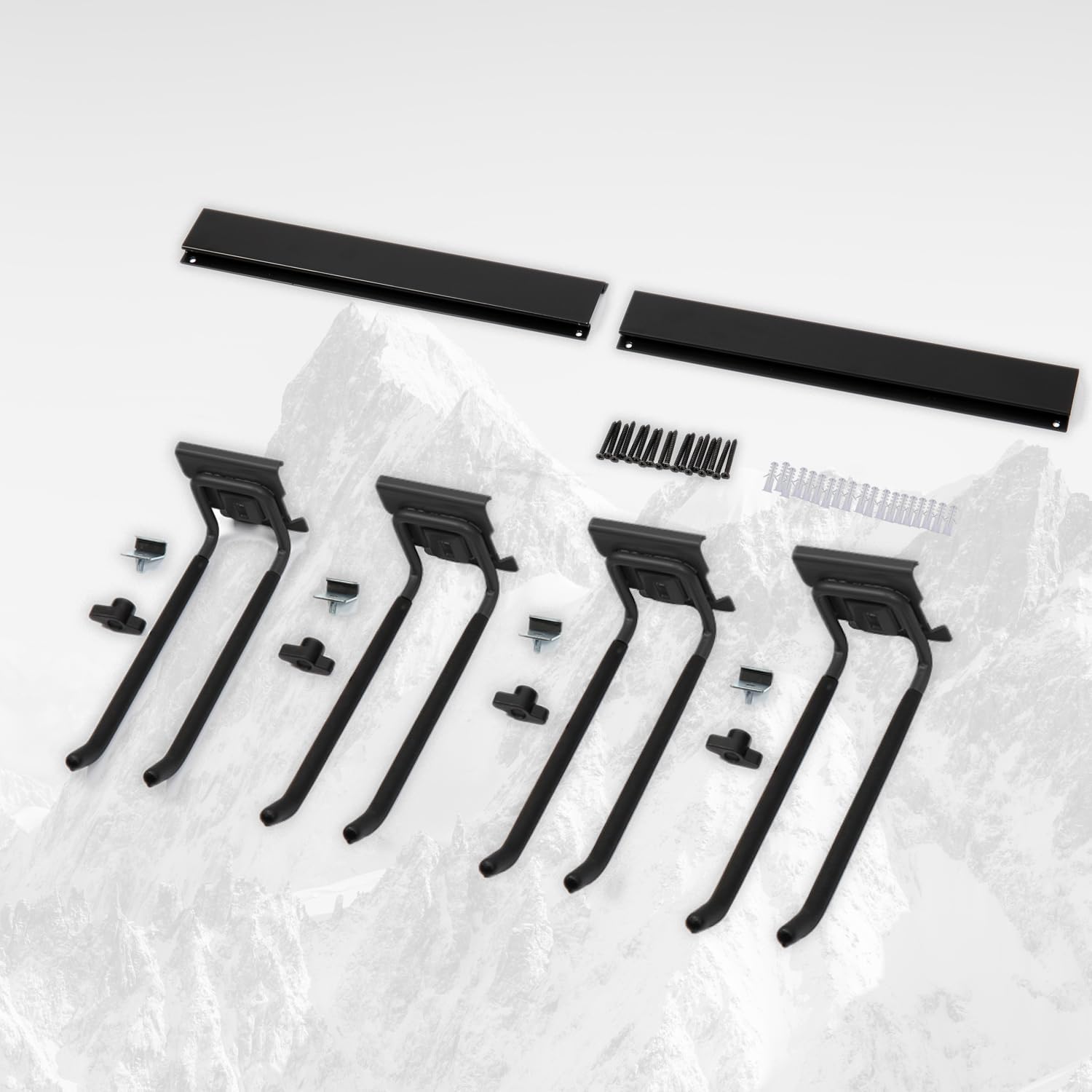 - ADJUSTABLE VERSATILE STORAGE: With a clamping screw, the hooks adjust along the wall track, accommodating various tool sizes. This garage storage system is ideal for organizing shovels, rakes, brooms, and more, making it a perfect yard tool organizer for garage.