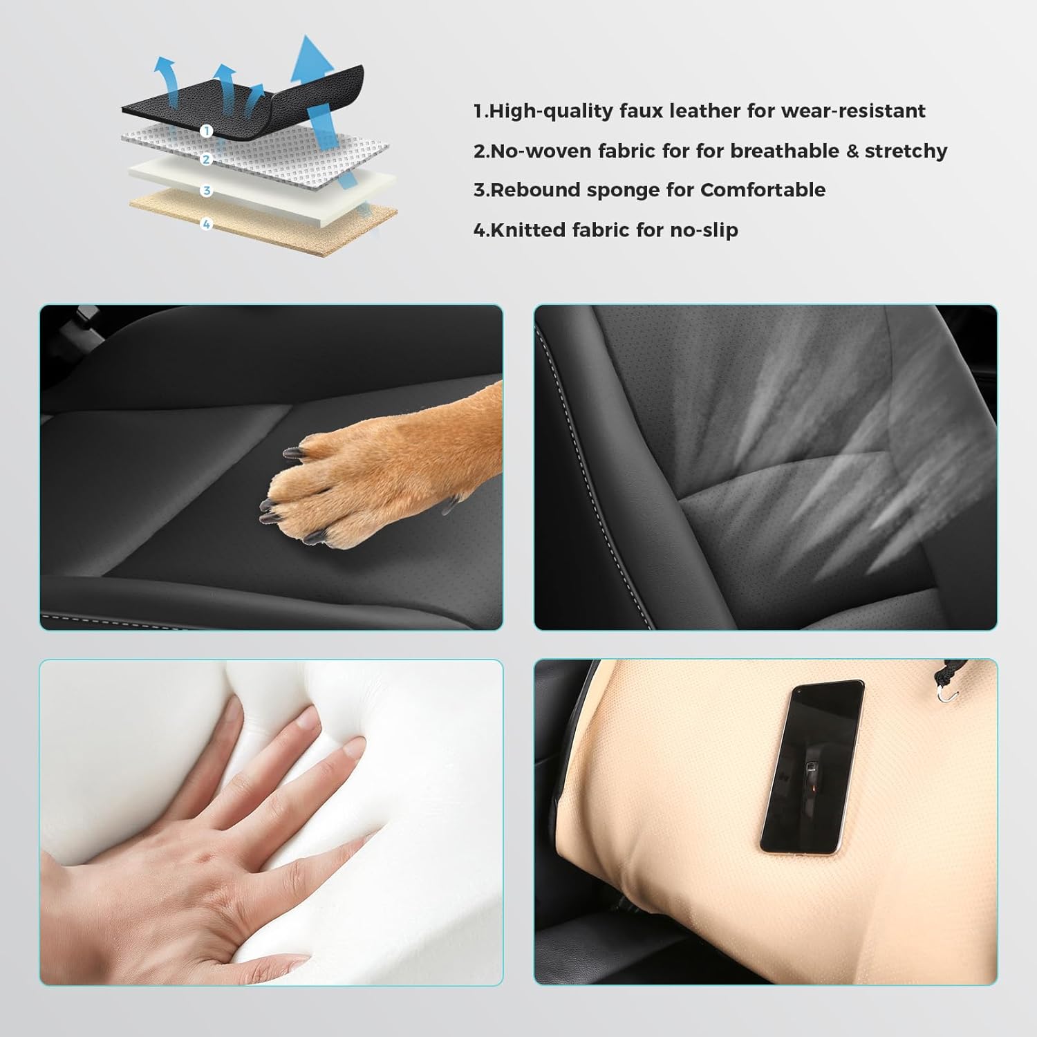 - 【Premium Car Seat Protection】: These waterproof car seat covers feature a four-layer construction, providing superior protection against spilled coffee, pet scratches, and the hot sun. They are easy to clean with just a damp cloth, ensuring your car seat covers last for a long time.