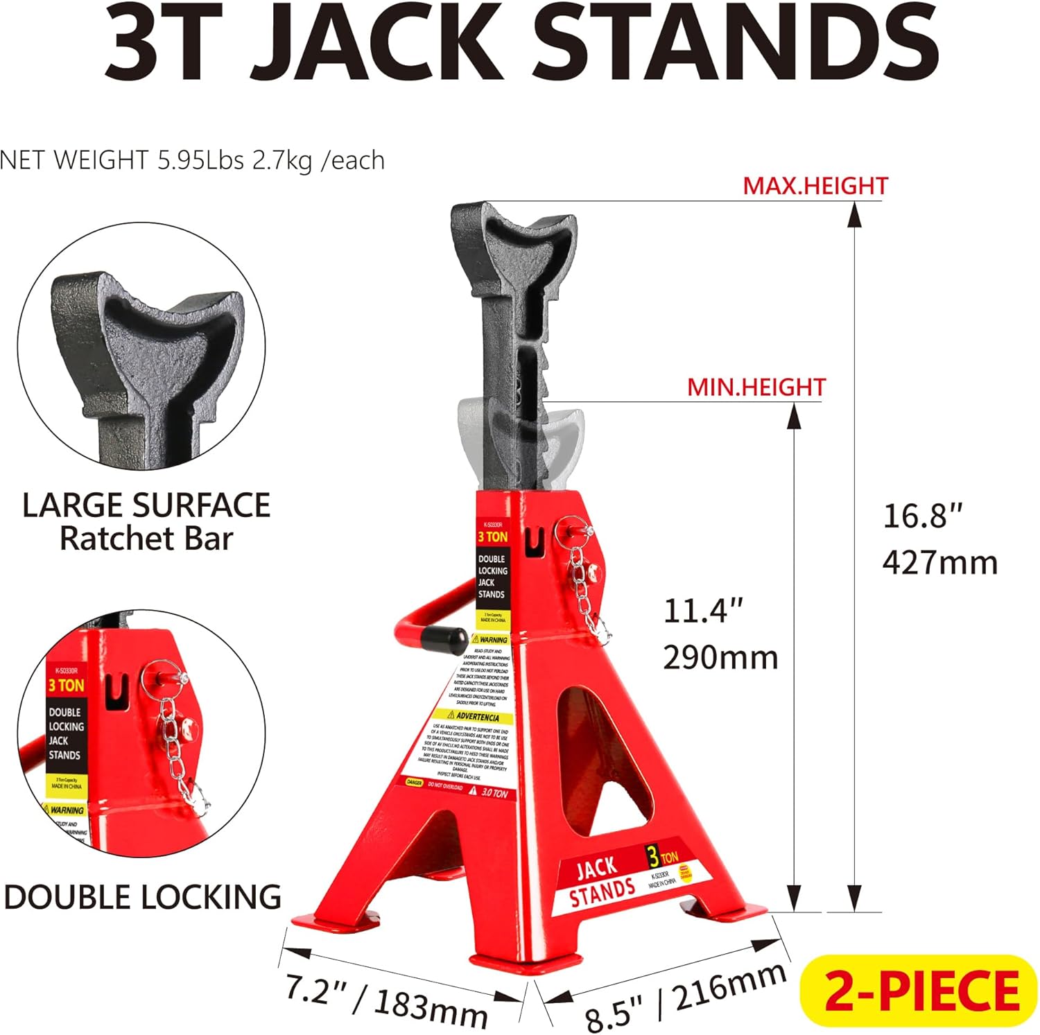 - Color : Red Floor Jack+2 Jack Stands+Repair Kit+Wrench