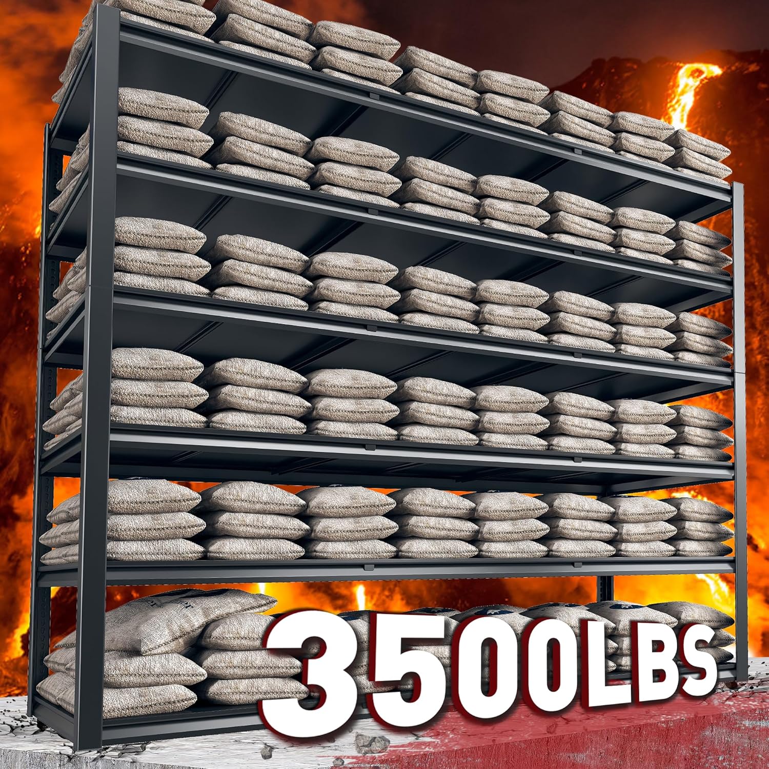 - 【3500 LBS Capacity Storage Shelves Heavy Duty】REIBII metal shelving is made of premium steel with double thickened partitions and each sturdy shelf can hold up to 580 LBS . The storage shelving construction as a whole is capable of supporting up to 3500LBS, and the thickened metal posts and beams provide greater support to avoid heavy-duty warping and bending of this 6 tier storage shelving. Heavy duty shelving is a very handy storage tool to keep your space clean and tidy
