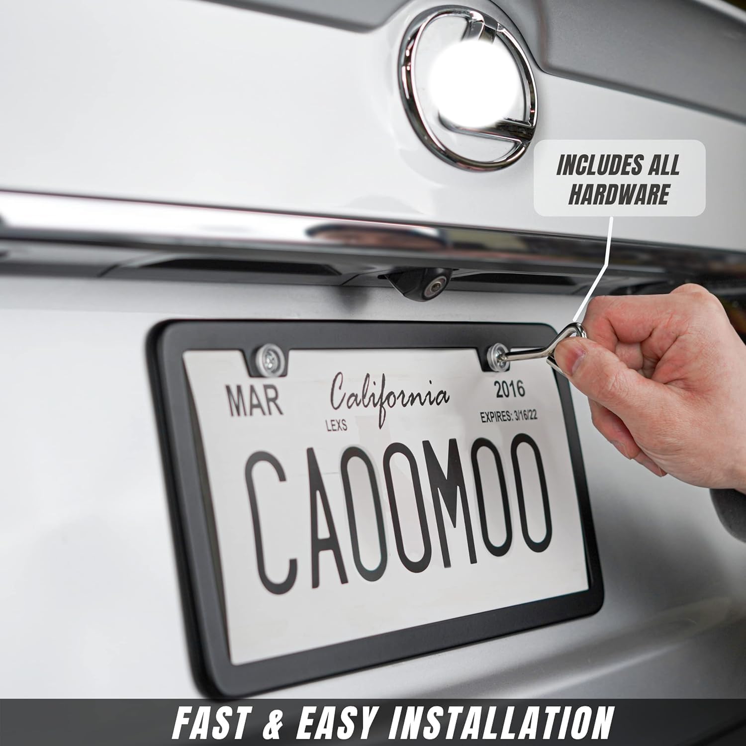 - Durable Construction: Matte Black Color.This license plate holder is crafted from high-quality materials(Premium Aluminum Alloy),which withstand the elements and daily wear and tear.(Rust-resistant,Water proof, Steam resistance)
