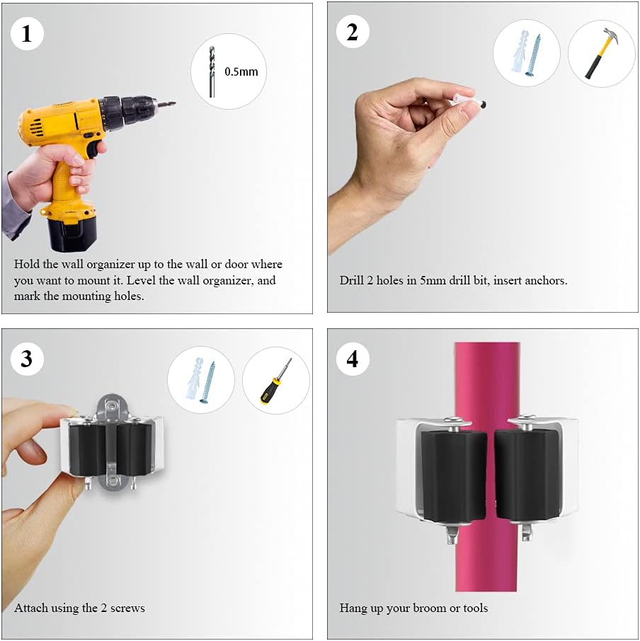 - PREMIUM QUALITY - The metal anti-rust Manganese Spring steel and the grip of the abrasion-resistant rubber keeps broom and dustpan,garden tools,yard tools,rake,shovels very well, with the anchor and screws supplied together, mop and broom holder wall mount can grip the mop handles for a long time without worrying the broom will fall off