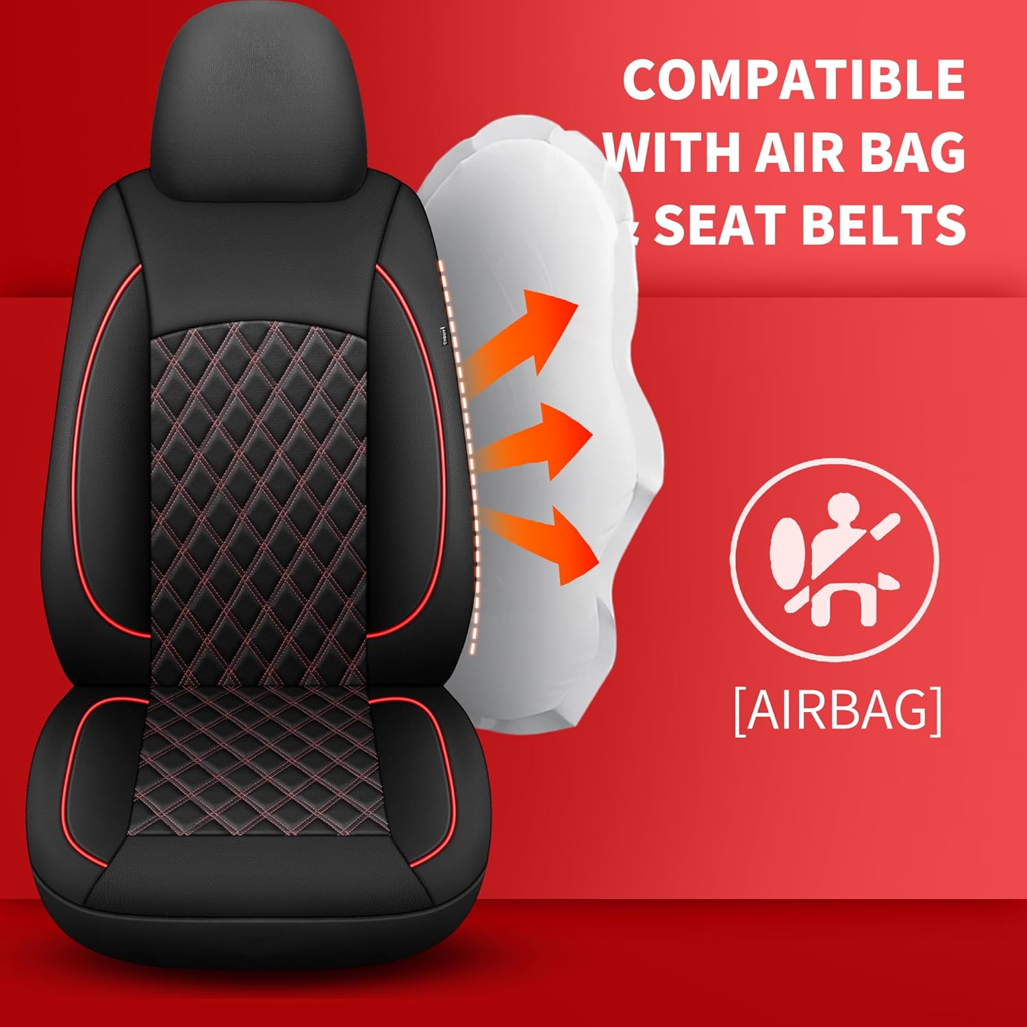 - Airbag Compatible:Our seat covers are airbag-compatible with reserved openings for headrest covers and seat belts, fitting most vehicles. Easy to install, they ensure safety with our exclusive airbag-patented design. They protect both you and your passengers without interfering with seat belt buckles.