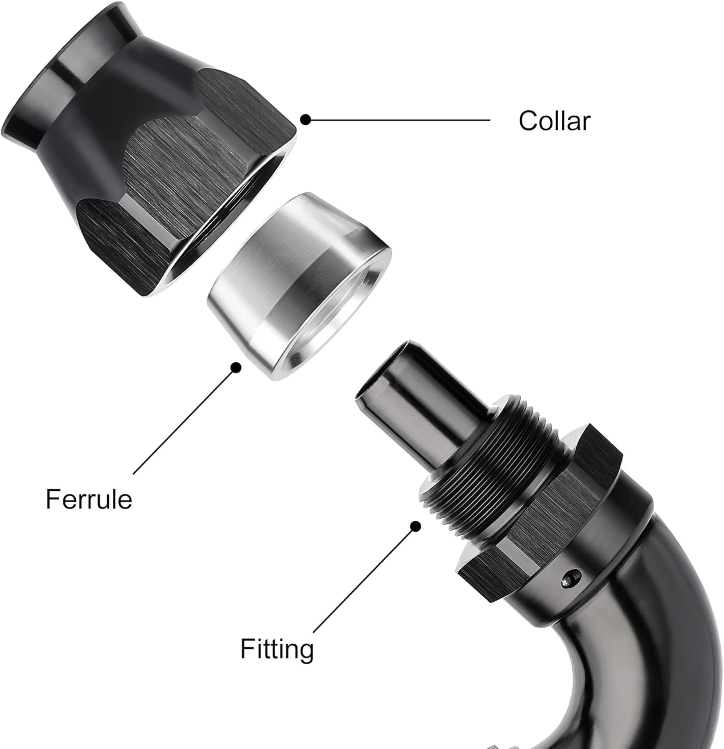 - [Built to Last] The one-piece PTFE hose end fitting is made from lightweight 6061-T6 aluminum alloy, and a black anodized finish on the surface increases durability, anti-corrosion, and wear resistance.