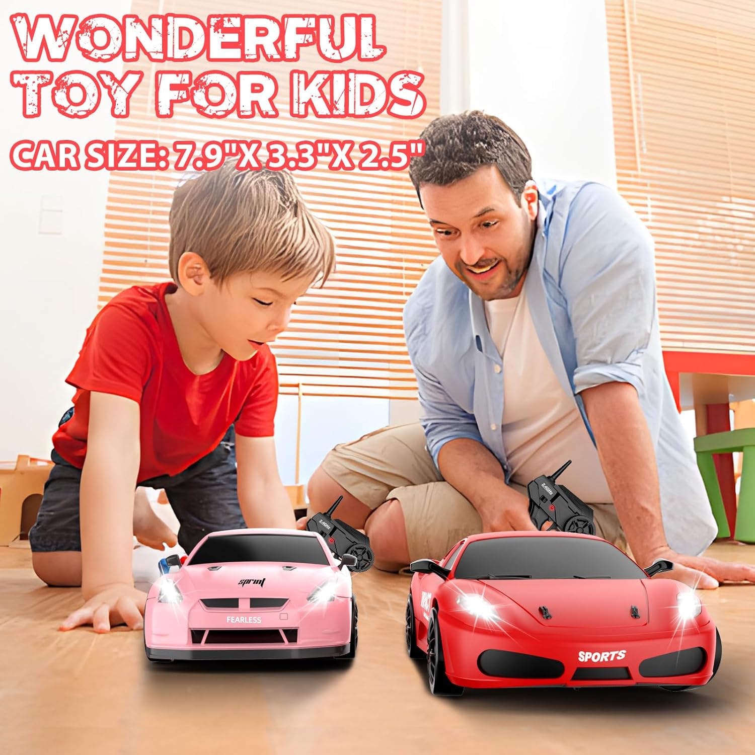 RC Drift Car, 2.4GHz Remote Control Cars 1/24 4WD High Speed Drift Car with LED Lights and Dritfing Tires Vehicle Racing Toy Cars for Boys Girls Adults Kids (Red)