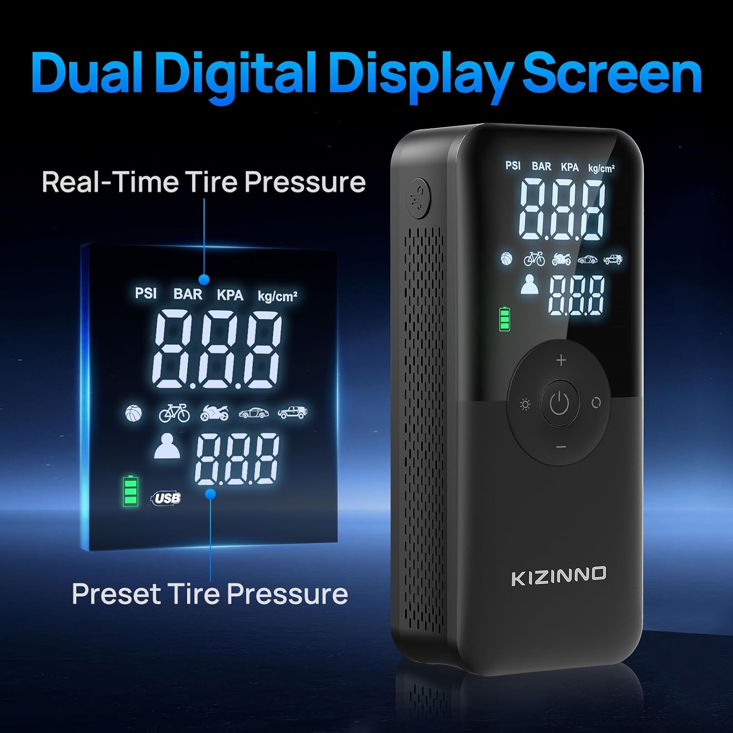 - Powerful Battery Capacity: Equipped with DUAL 2600mAh batteries, our portable electric bike pump can inflate up to 15 road bike tires (700*23C) on a single charge. T3S powerful bike pump takes a tire from 0-100 PSI (700*23C) in just a minute
