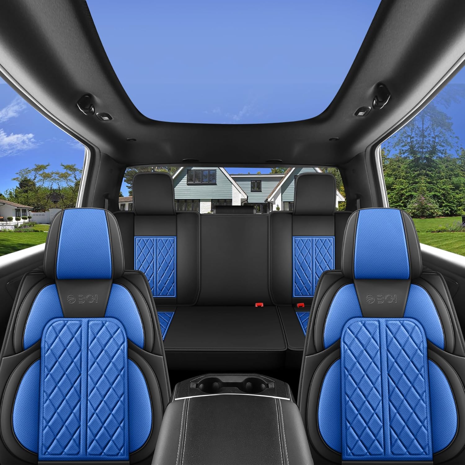 Car Seat Cover Custom Fit for Dodge Ram 1500 2500 3500 2002-2024 Faux Leather Seat Cover Set Compatible with Crew Quad Regular Cab Pickup Truck Cushions (Black & Blue, Front Seat)