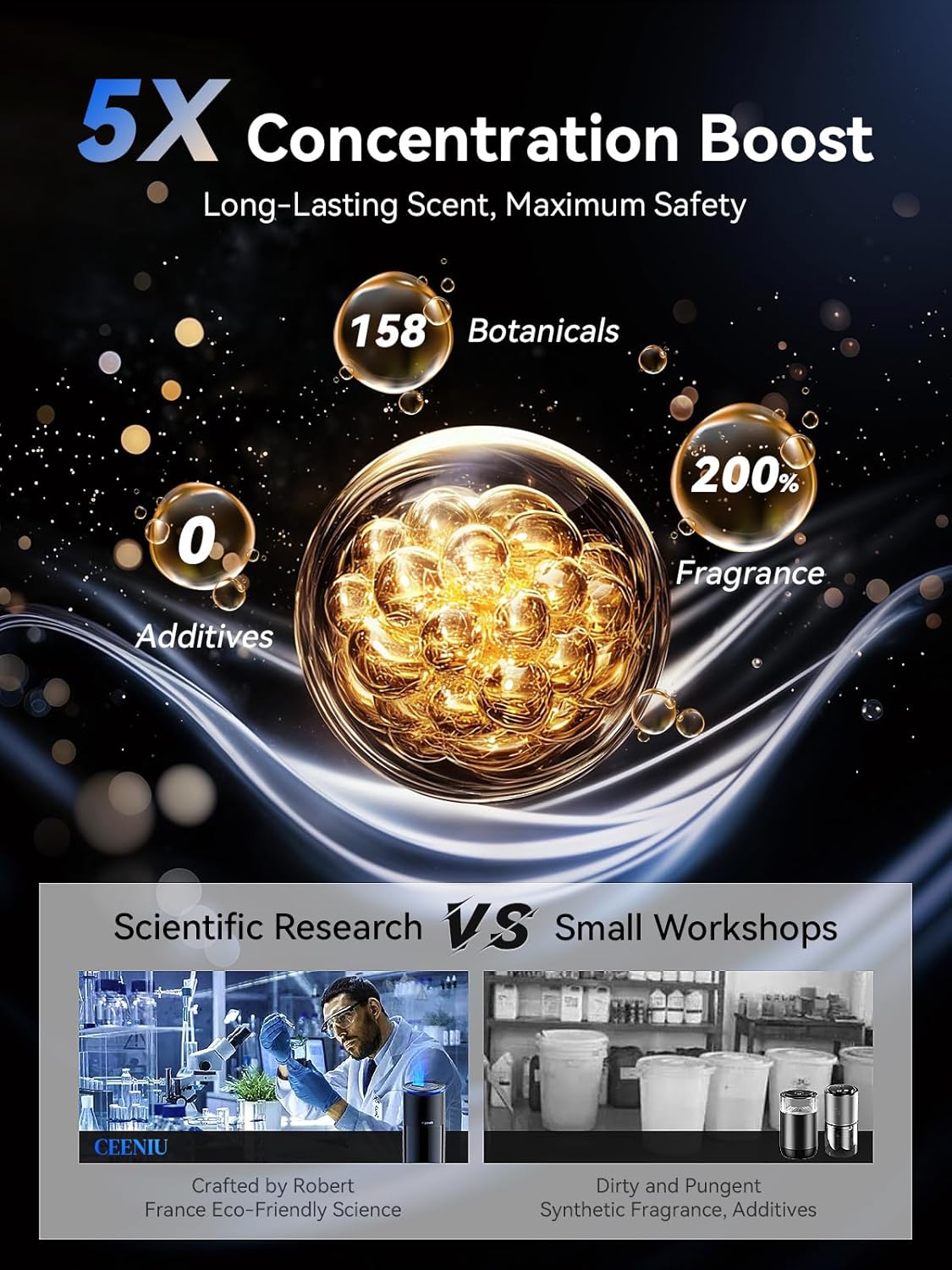 - [2025 Flagship Model: Upgraded Fountain Mist Nozzle] Enjoy a premium fountain spray and stylish blue lighting with the Ceeniu CF12 Smart Car Air Freshener! Experience luxury and long-lasting freshness—all in one charge. Just go with it!