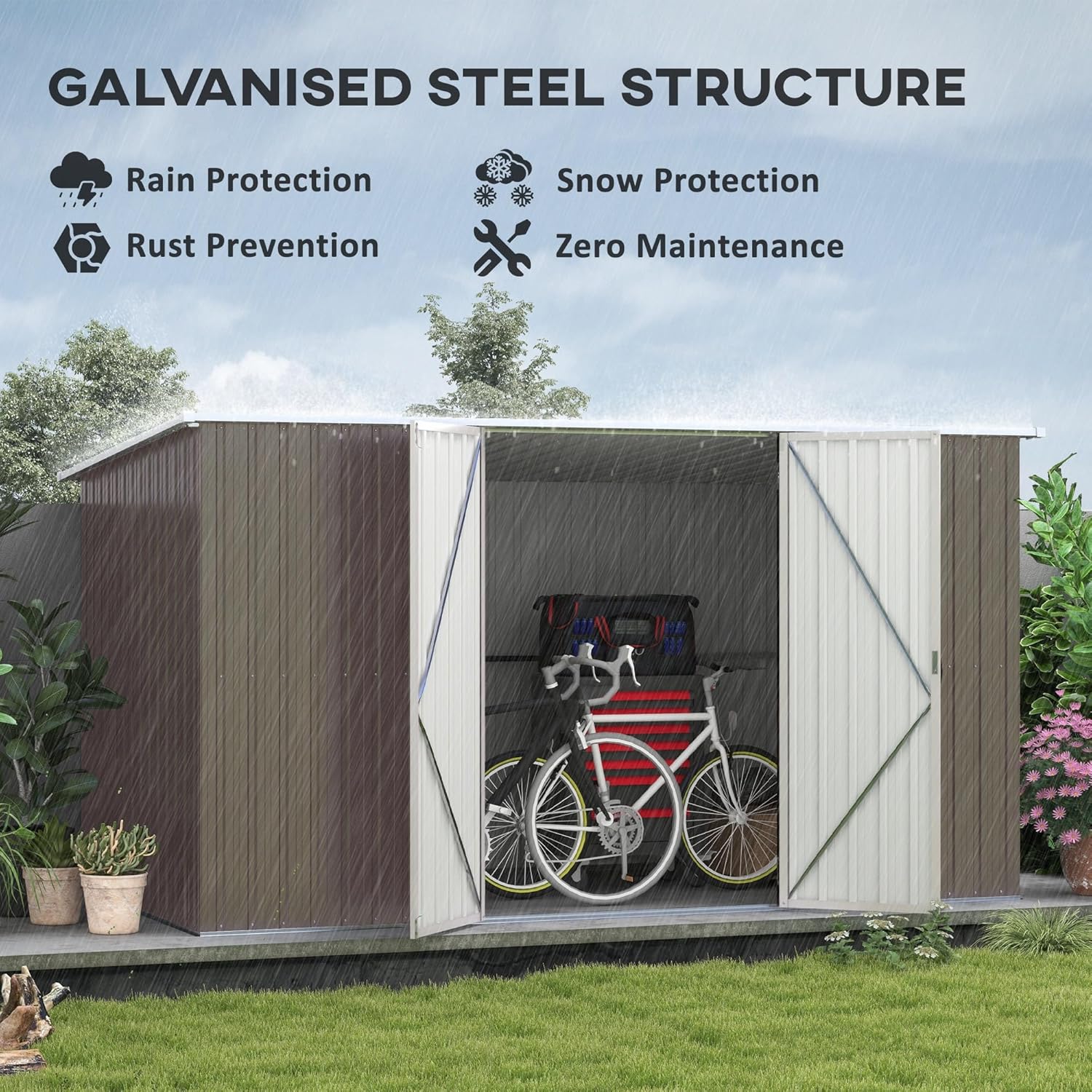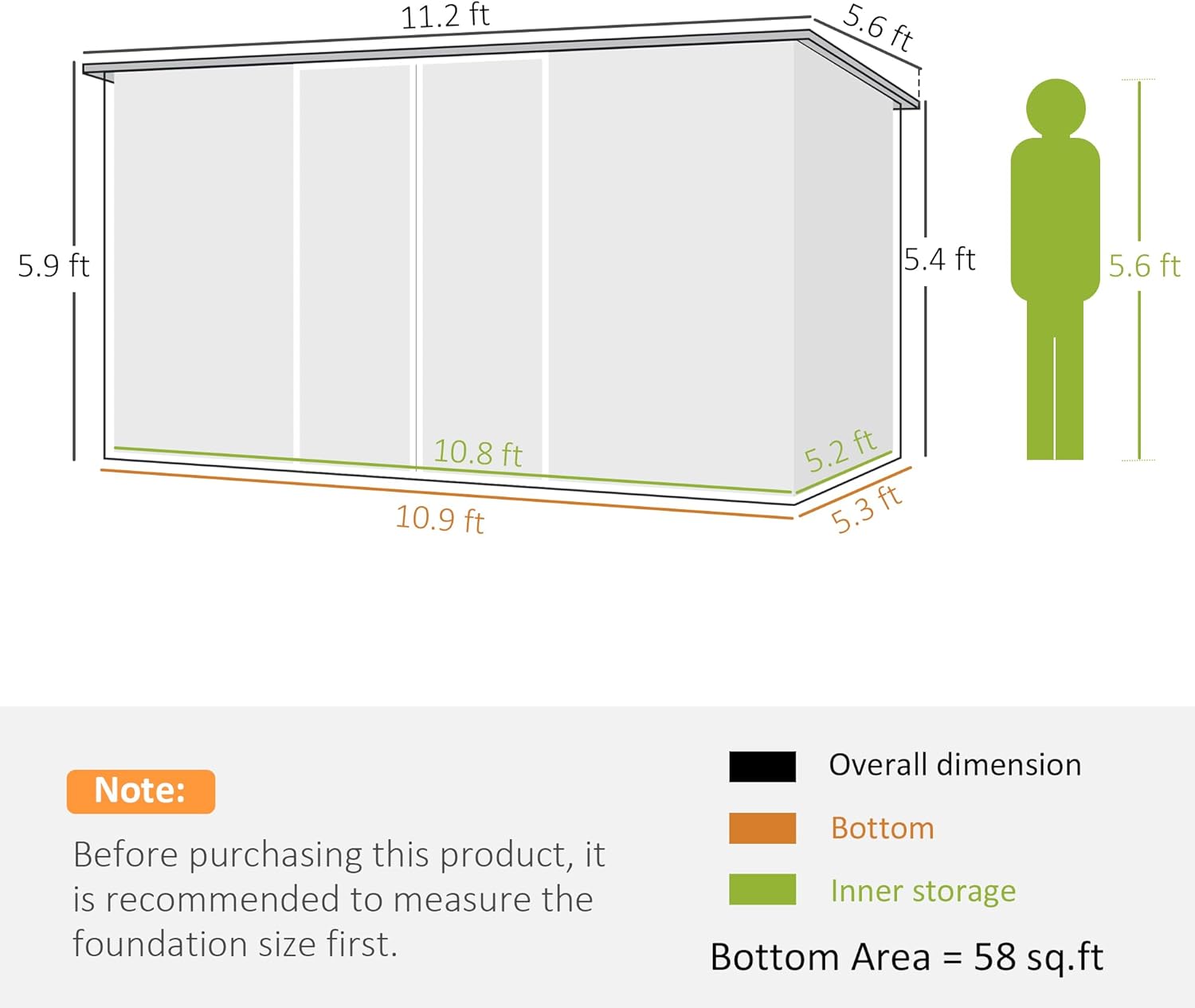 Outsunny 11' x 6' Outdoor Storage Shed, Galvanized Metal Utility Garden Tool House, 2 Vents and Lockable Door for Backyard, Bike, Patio, Garage, Lawn, Light Gray