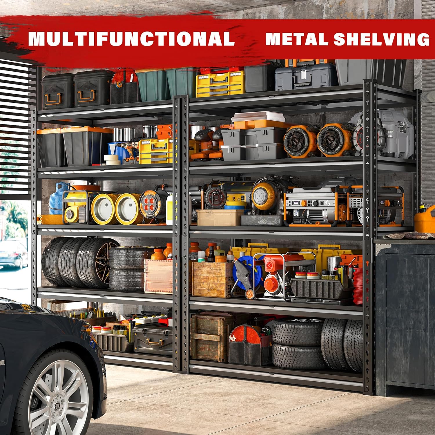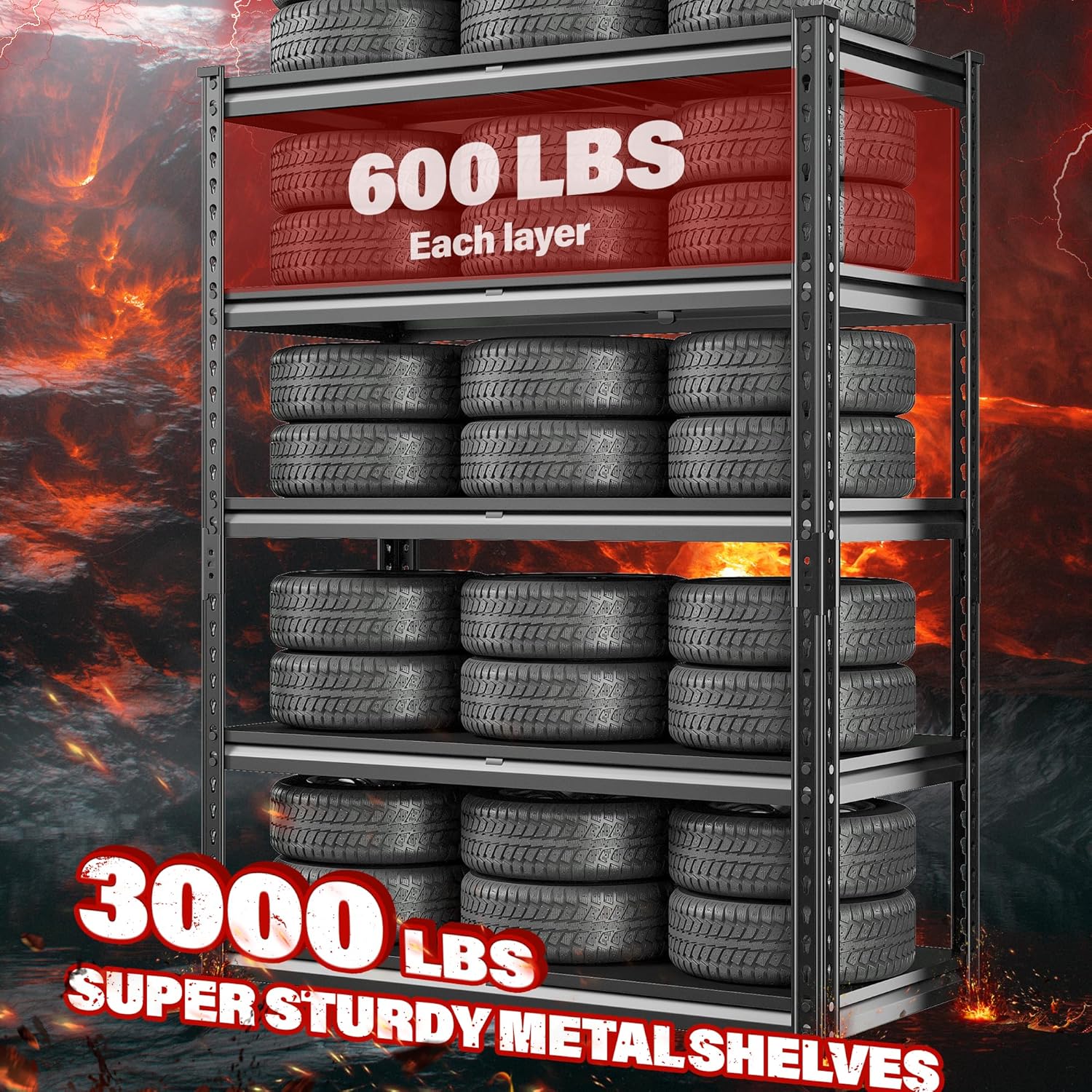 - ăExtremely Sturdy & 3000LBS Garage Shelvingă3 Support ribs, thickened metal columns and beams provide greater supoort. REIBII's heavy duty garage storage shelves has thickened metal legs. Each solid thickened metal heavy duty shelving can hold up to 600LBS, with a total bearing capacity of 3000LBS, which makes industrial garage shelves heavy duty more stable and solid than flimsy wood board storage shelves
