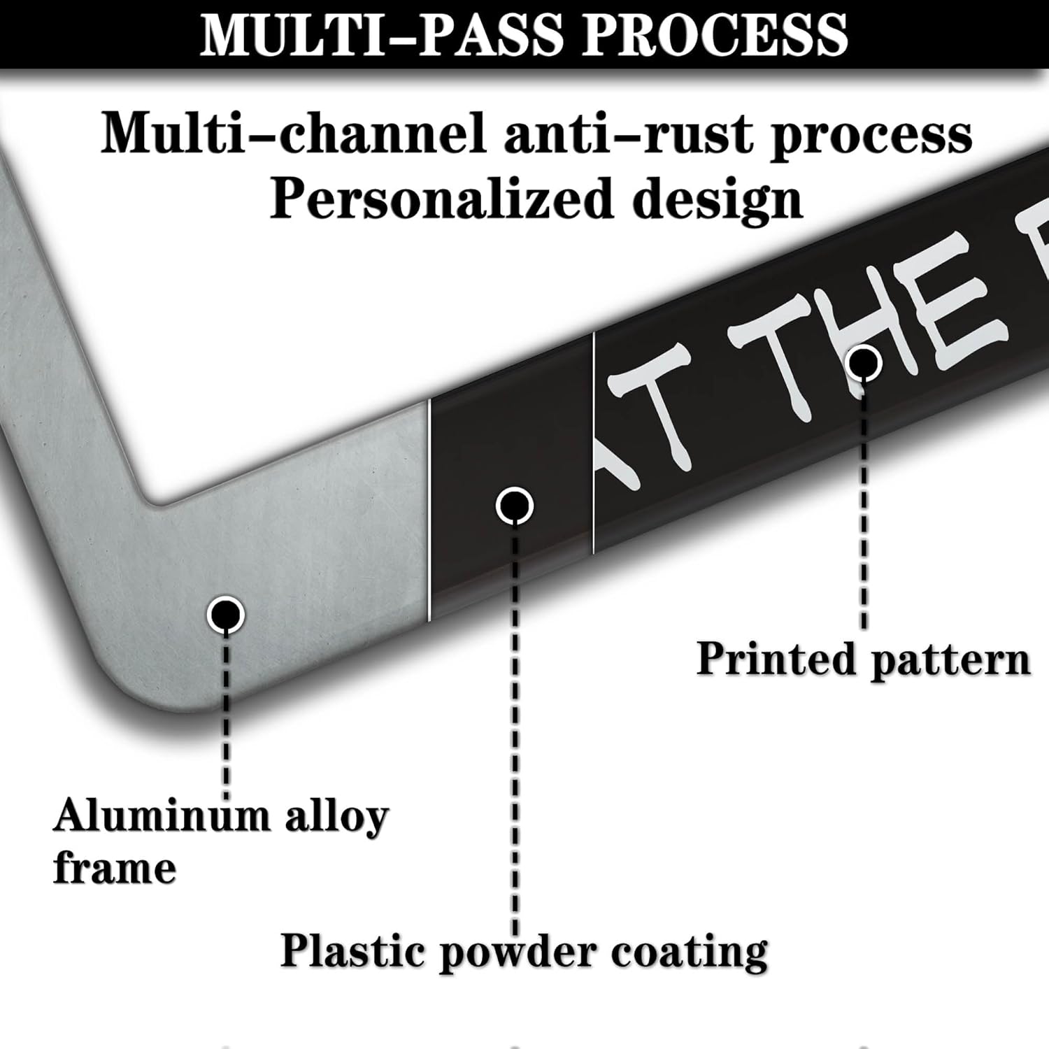 - ALUMINUM FRAME: This License Plate Frame is crafted from high-quality aluminum that is resistant to corrosion, rust, and harsh weather conditions. Its rugged reliability design ensures a long lifespan, making it capable of withstanding car washes and extreme weather, providing you with a reliable and stylish solution for your vehicle.