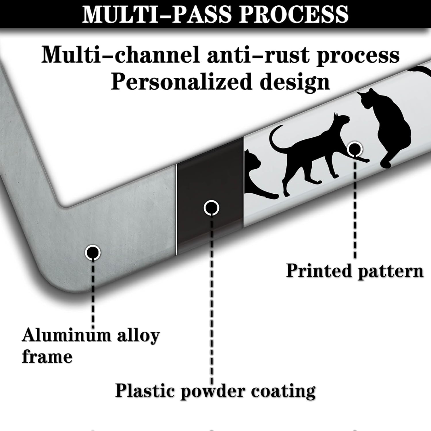 License Plate Frames for Women Black and White License Plate Frame for Men Black Cat Aluminum Metal Car Accessory 2 Pack with Screw Covers Set