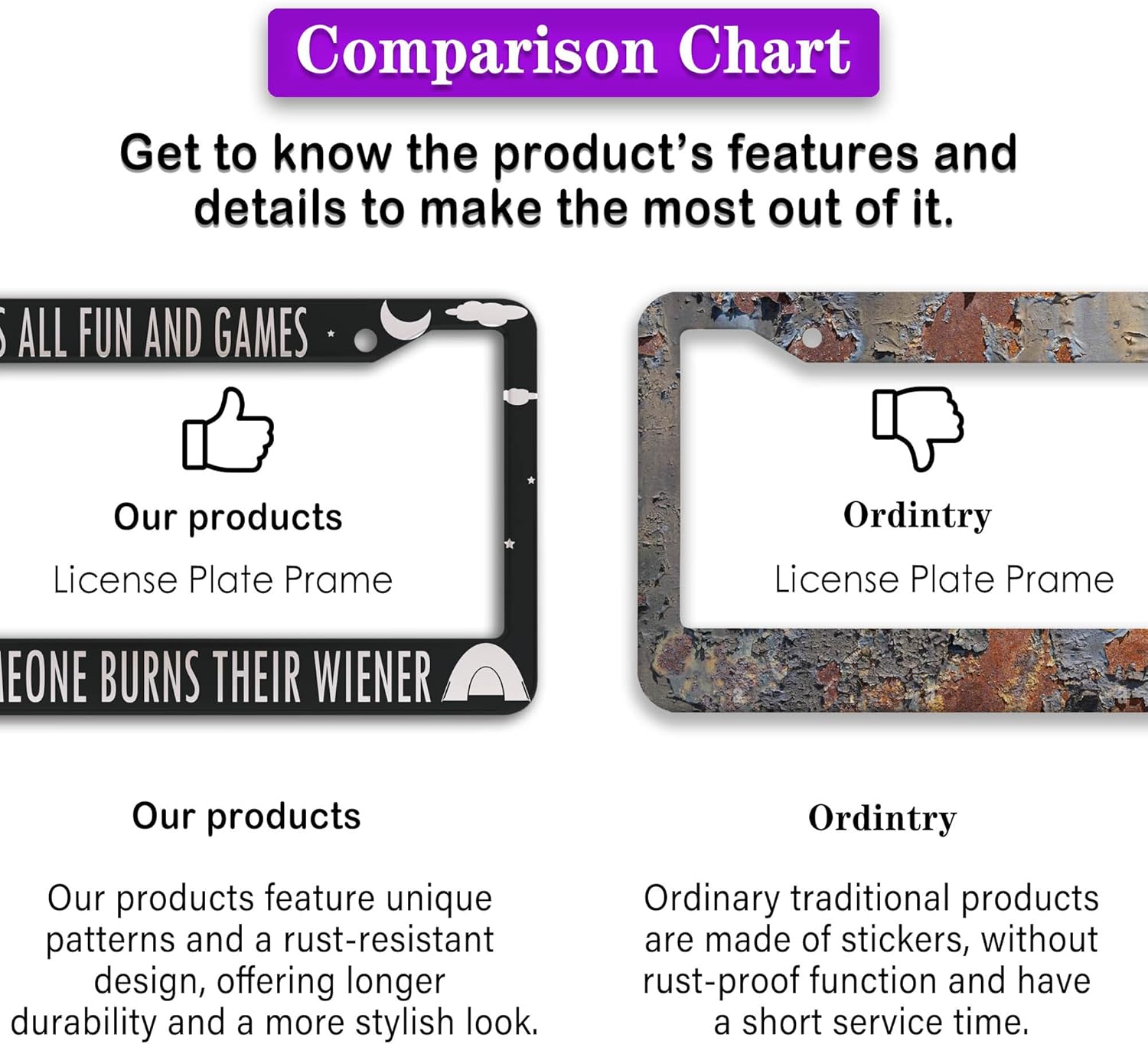- FUNNY DESIGN: Featuring a unique and customized design, this license plate frame creates an eye-catching and bold statement for your vehicle. Not only does it add a touch of personality to your car, but it also makes for a great holiday gift, souvenir, or decorative piece for family, friends, and colleagues. Elevate your vehicle's style while sharing a laugh!