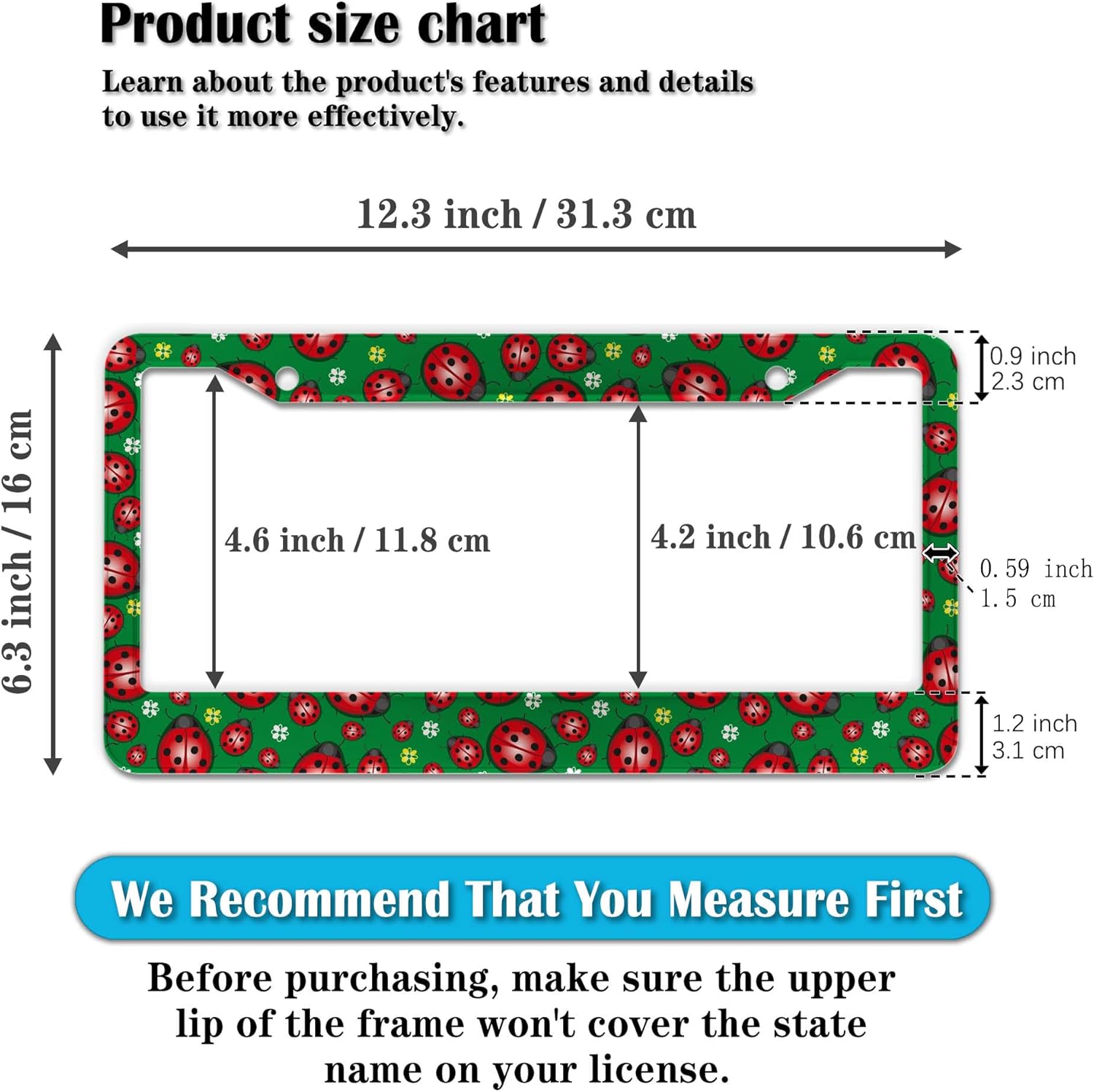 License Plate Frame Red Green License Plate Protector Cute Ladybug and Flowers Universal Aluminum Car Accessory 2 Pack with Screw Covers Set