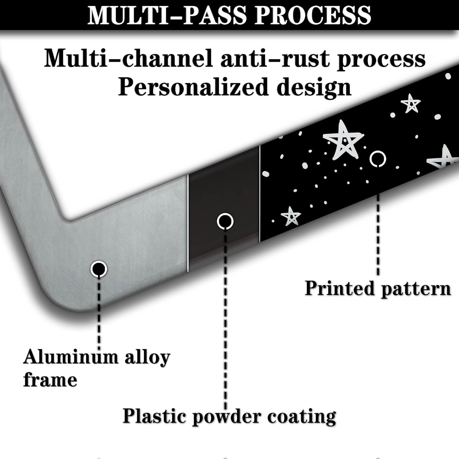 - ALUMINUM FRAME: This License Plate Frame is crafted from high-quality aluminum that is resistant to corrosion, rust, and harsh weather conditions. Its rugged reliability design ensures a long lifespan, making it capable of withstanding car washes and extreme weather, providing you with a reliable and stylish solution for your vehicle.