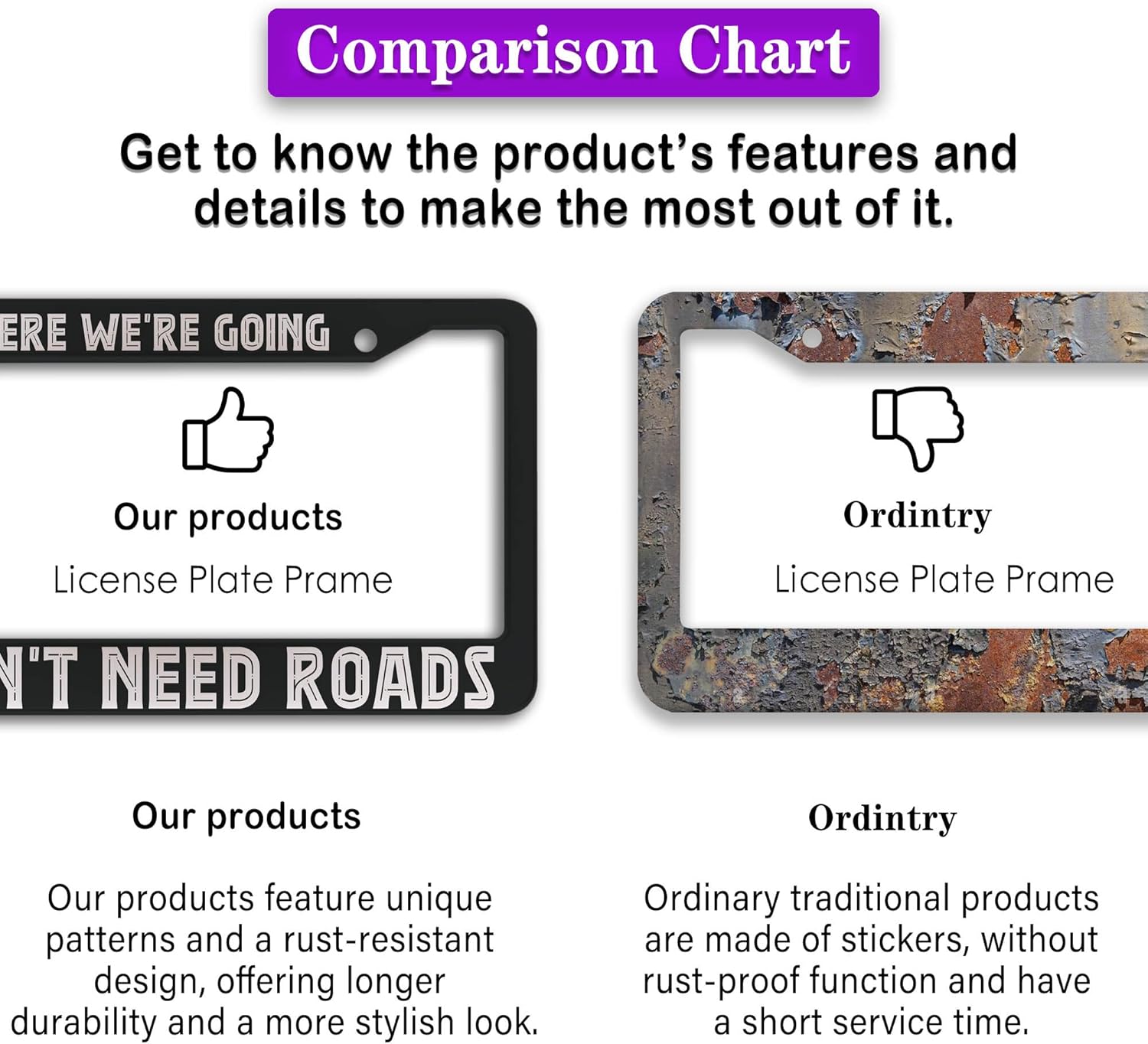 - FUNNY DESIGN: Featuring a unique and customized design, this license plate frame creates an eye-catching and bold statement for your vehicle. Not only does it add a touch of personality to your car, but it also makes for a great holiday gift, souvenir, or decorative piece for family, friends, and colleagues. Elevate your vehicle's style while sharing a laugh!