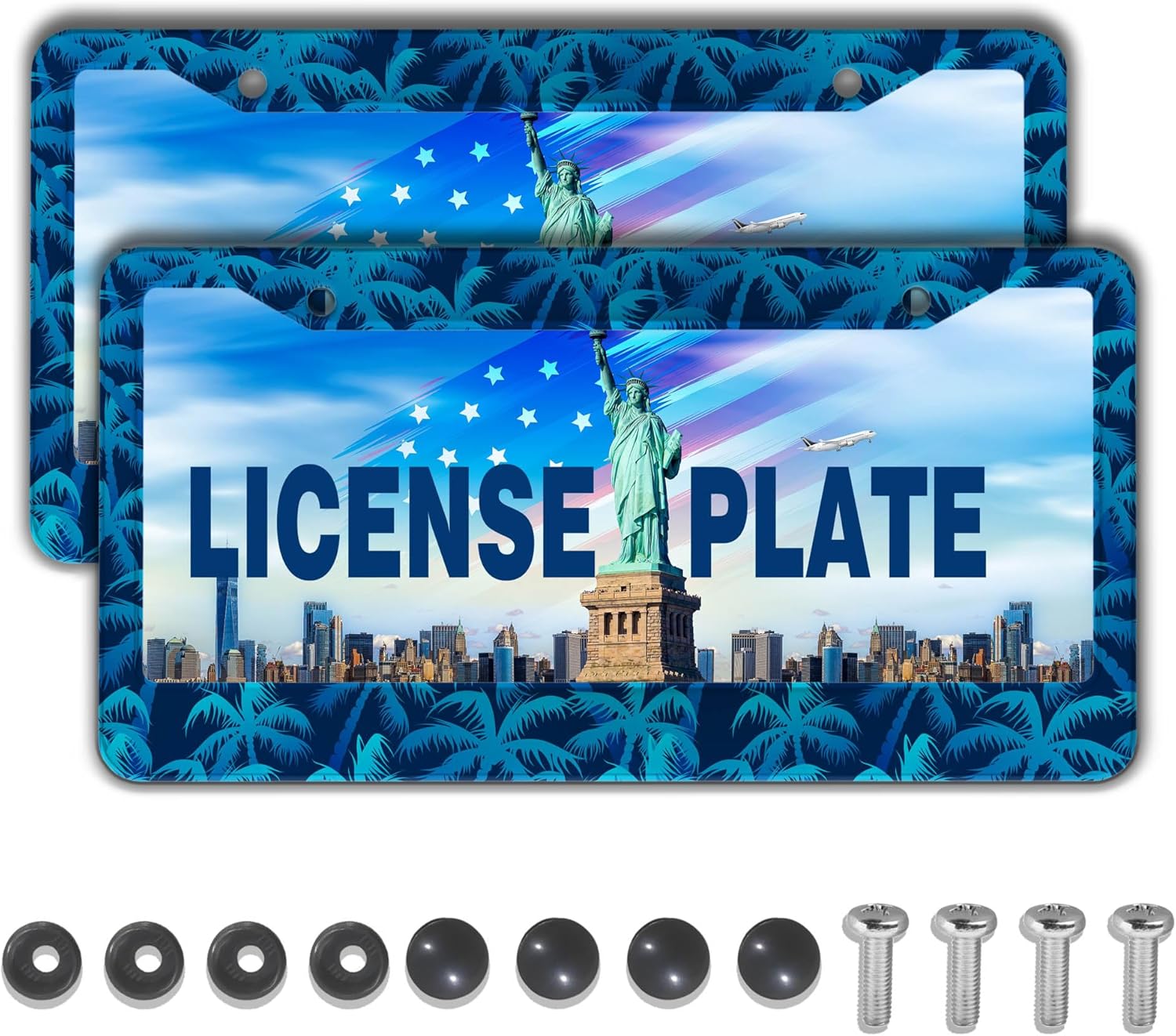 - ALUMINUM FRAME: This License Plate Frame is crafted from high-quality aluminum that is resistant to corrosion, rust, and harsh weather conditions. Its rugged reliability design ensures a long lifespan, making it capable of withstanding car washes and extreme weather, providing you with a reliable and stylish solution for your vehicle.