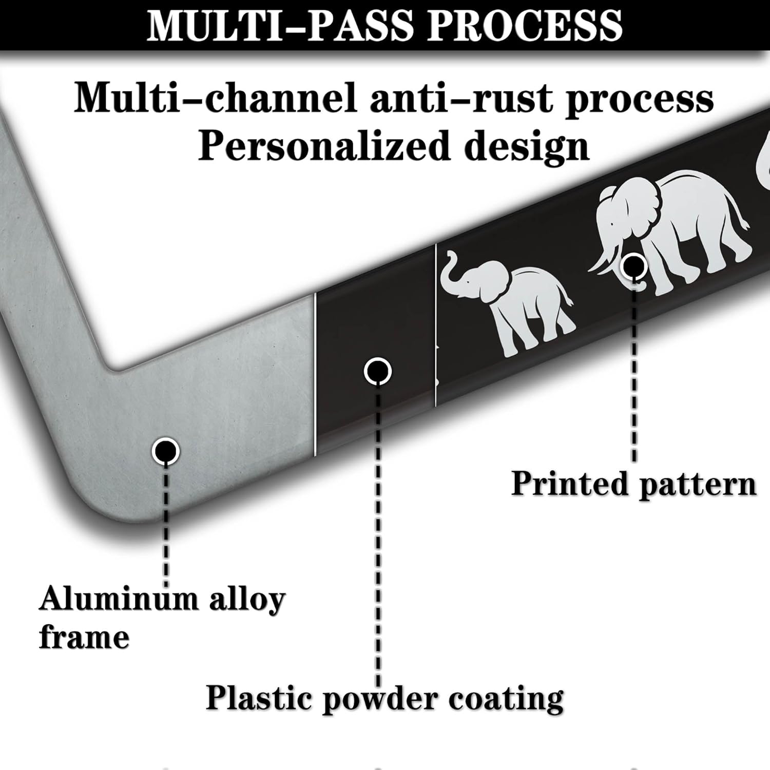 License Plate Frames Black and White Fun License Plate Frame Cover I Love Elephants Universal Aluminum Car Accessory 2 Pack with Screw Covers Set
